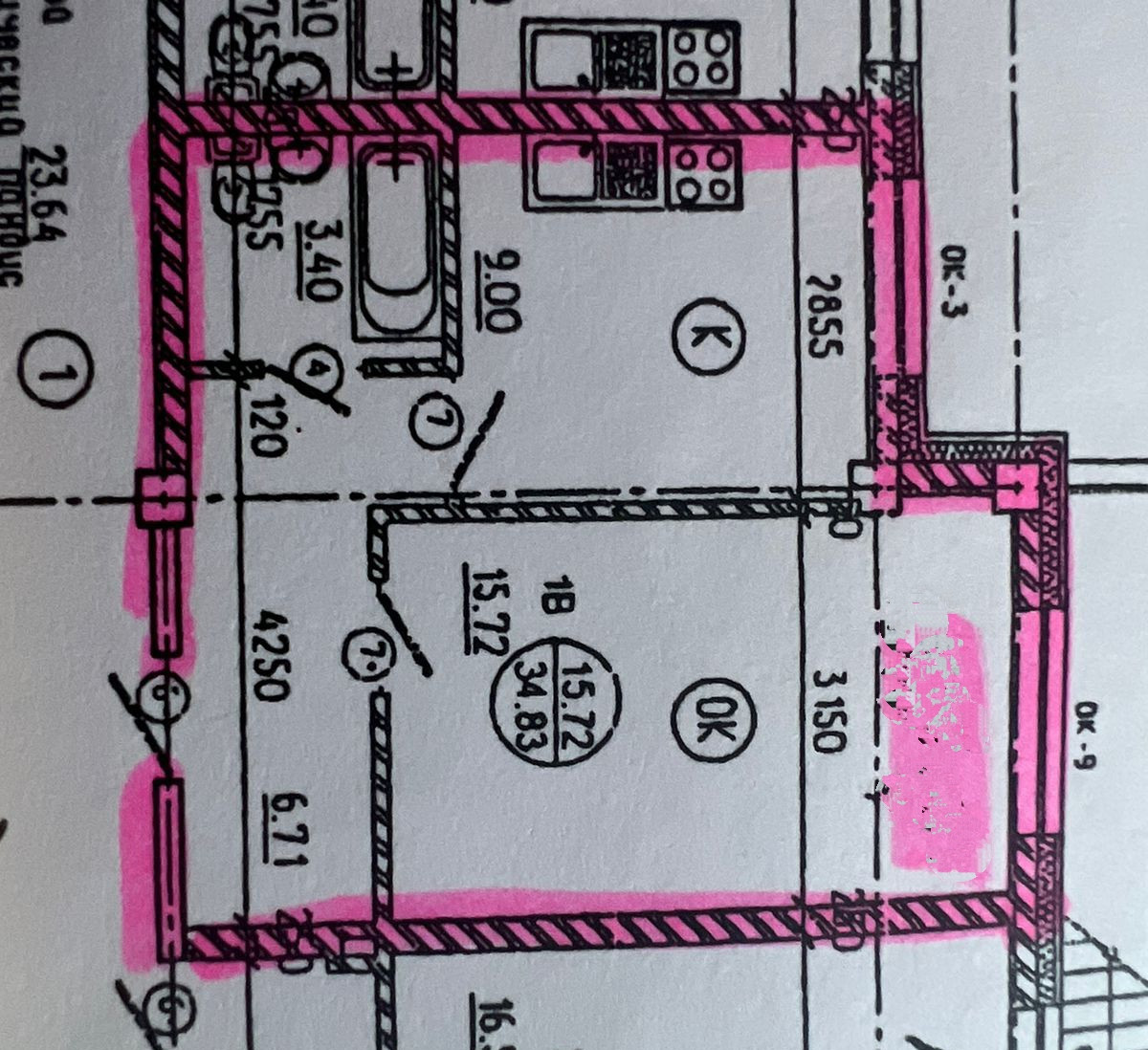 Площадь кухни 9.1 м2