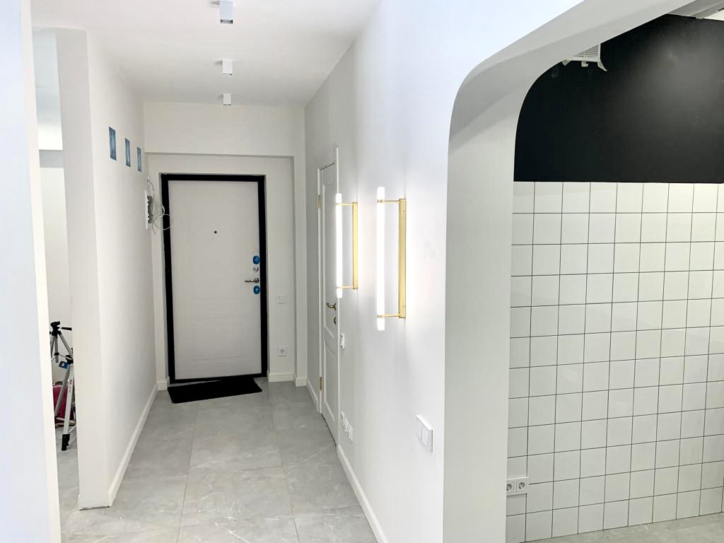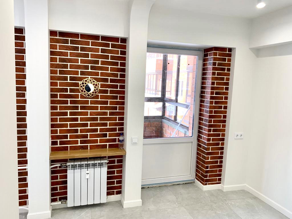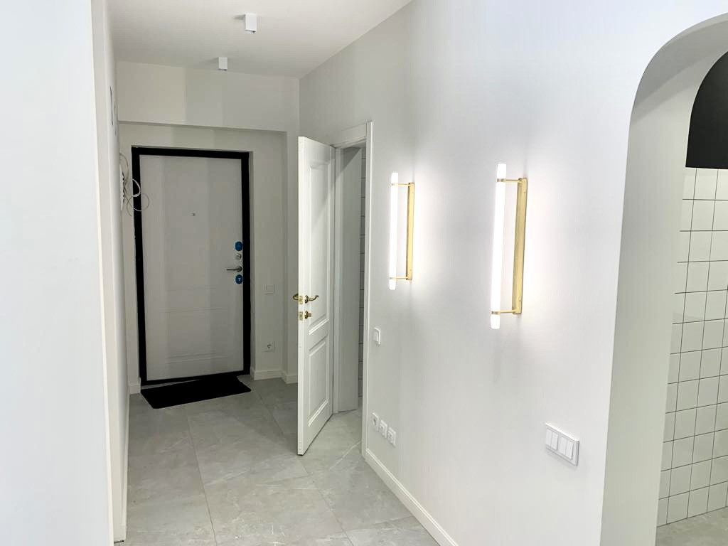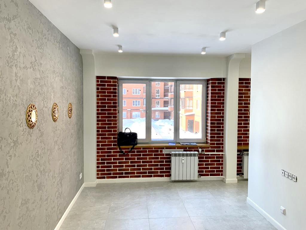 В квартире выполнен дизайнерский ремонт, интересная планировка. По всей квартире тёплые полы с подогревом. Натяжные потолки с подсветкой. Ванная комната отделана красивой кафельной плиткой. Установлена дорогая сантехника, качественная новая входная дверь. Окна и балкон выходят во двор. Во дворе детская площадка
