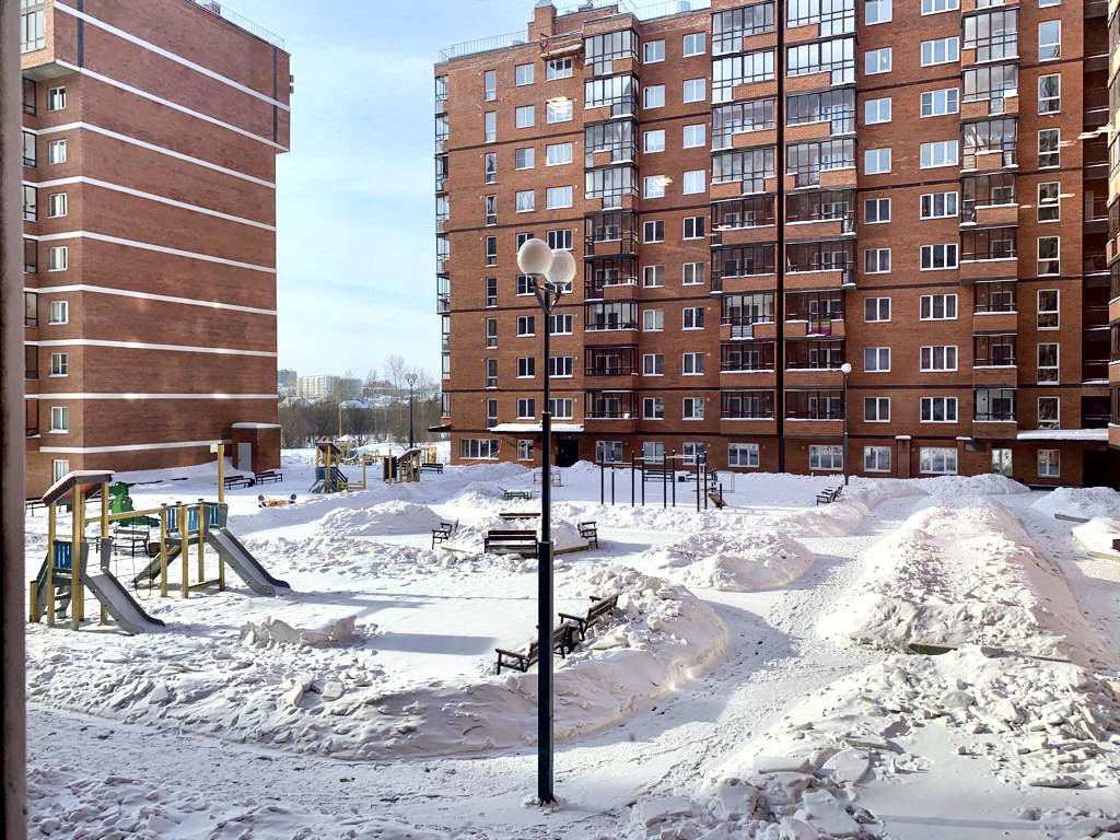 Во дворе детская площадка, большая парковка. Рядом река Ушаковка, вся инфраструктура: аптеки, остановки, магазины и т.д. Один взрослый собственник.