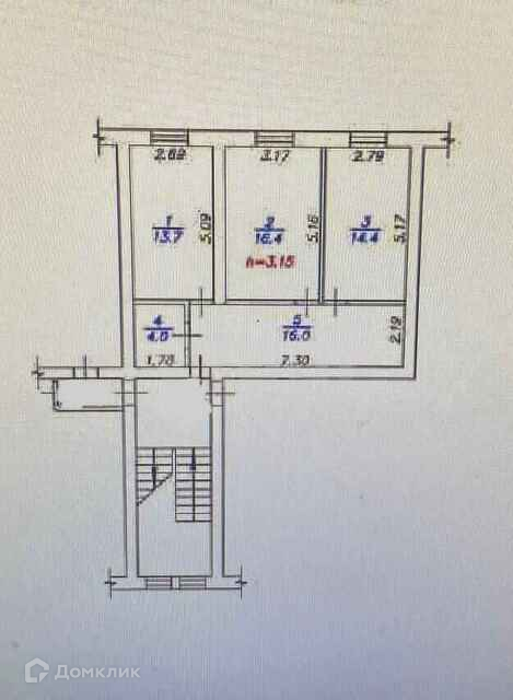 Общая площадь 64.5 м2