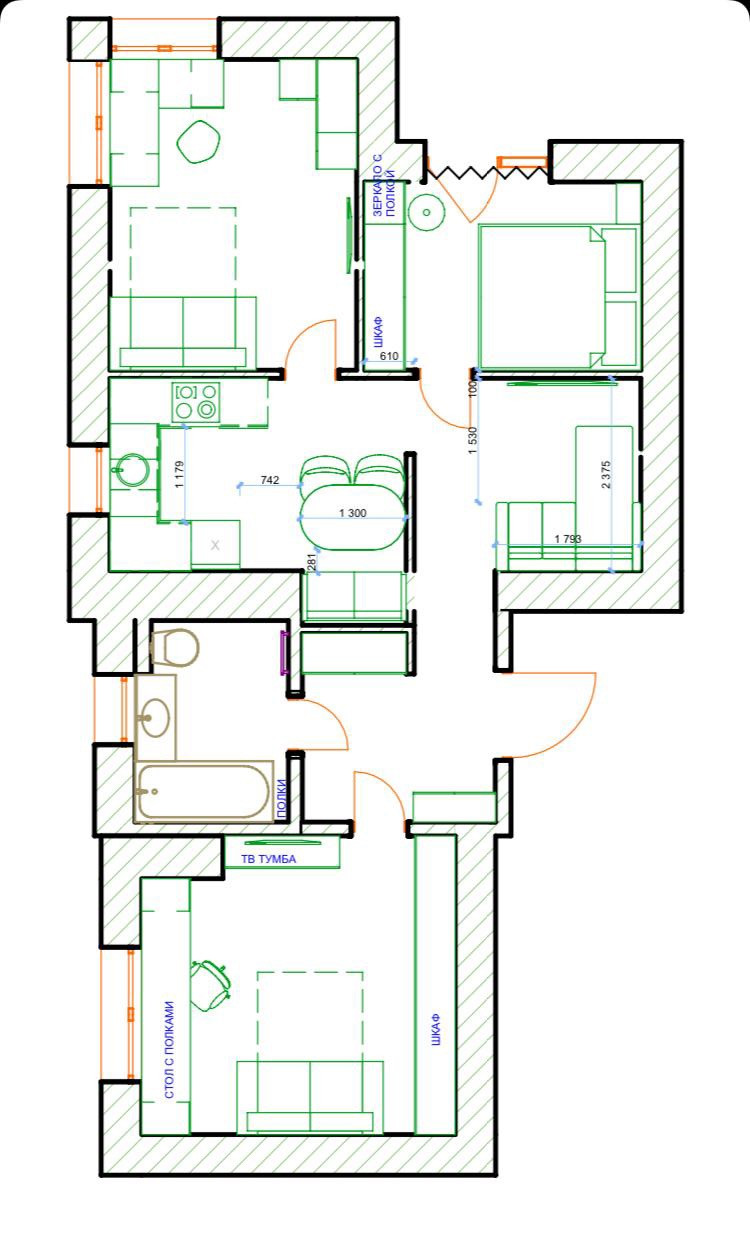 Общая площадь 64 м2