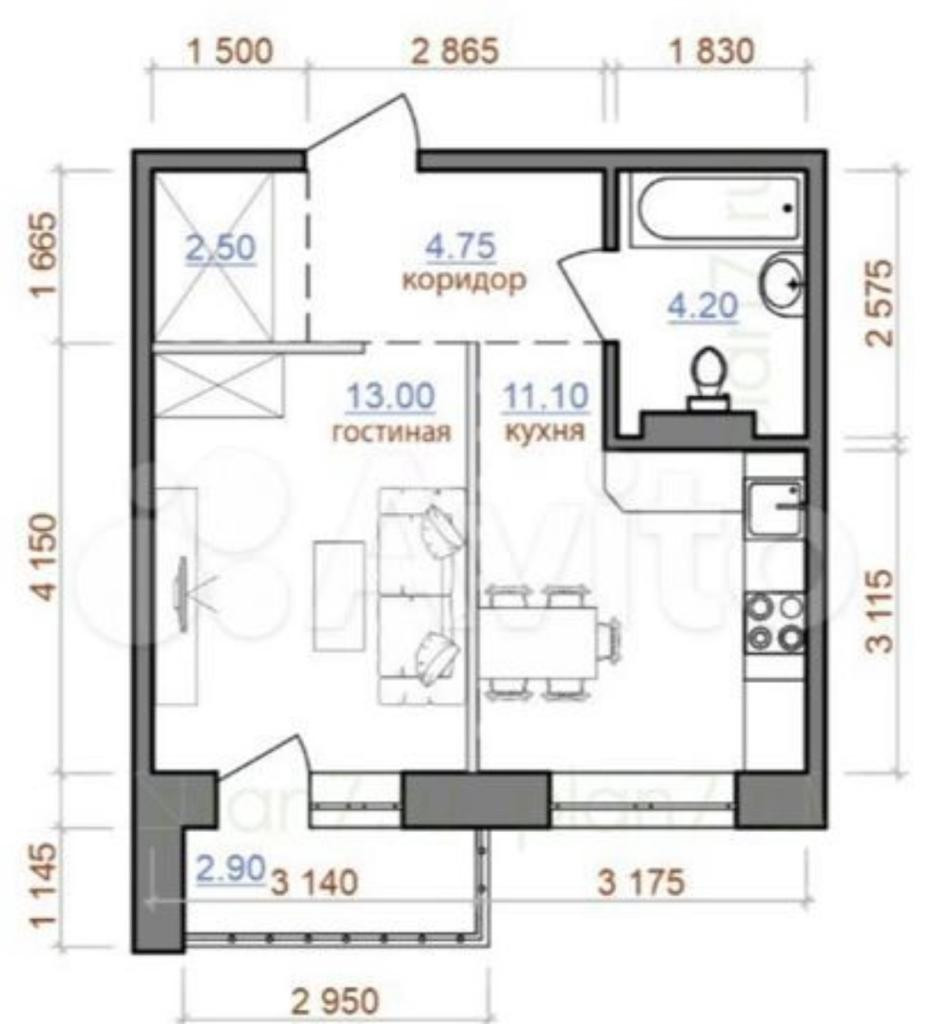Площадь кухни 9 м2
