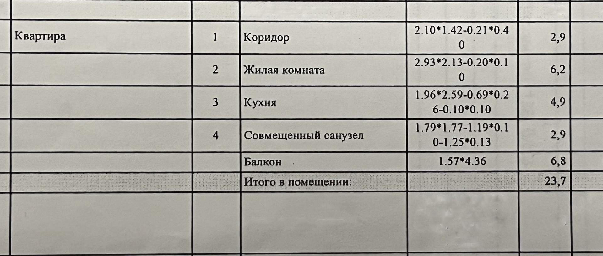 Общая площадь 23.7 м2