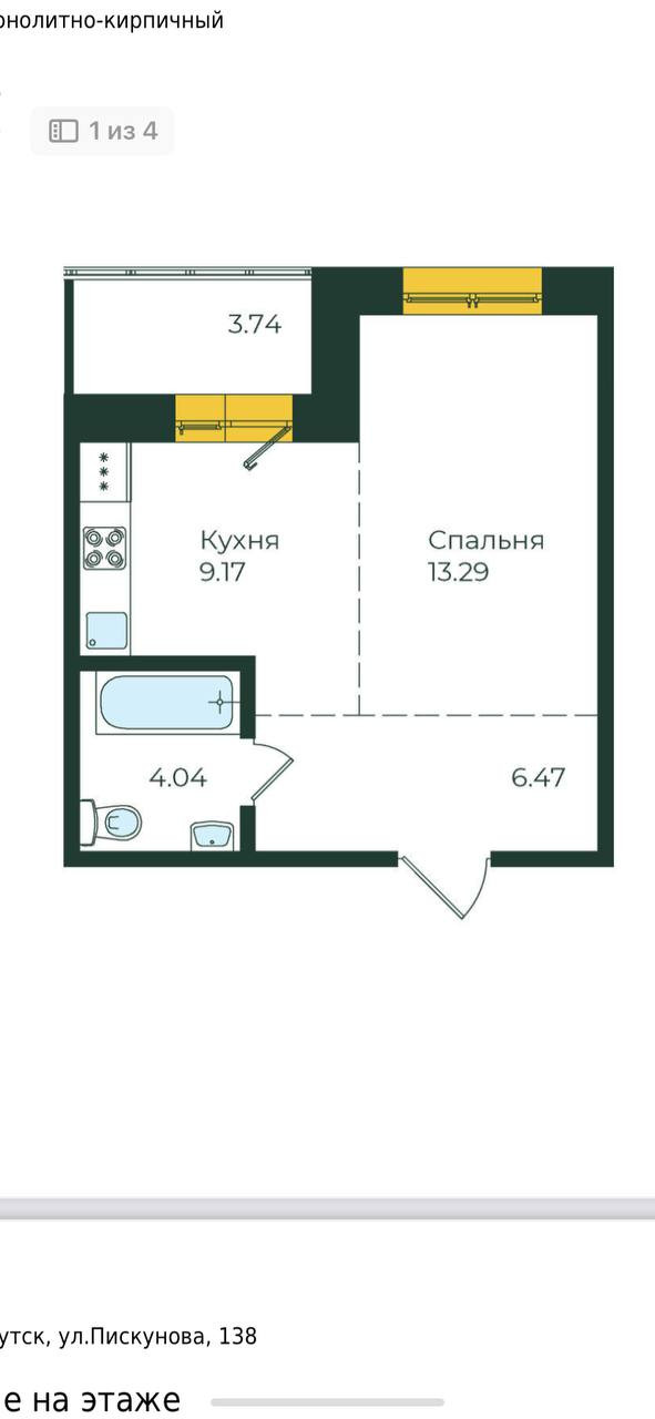 1-комнатная квартира, 36.71 м2, этаж 10 / 19, на продажу в Иркутске, улица Пискунова, 138