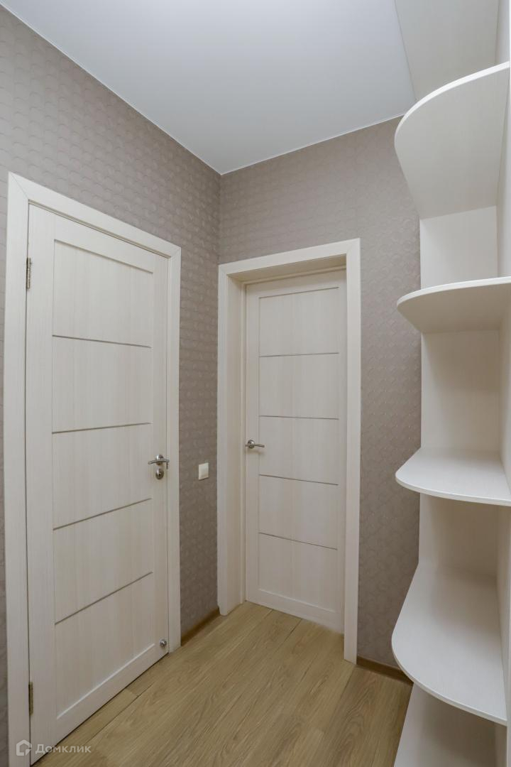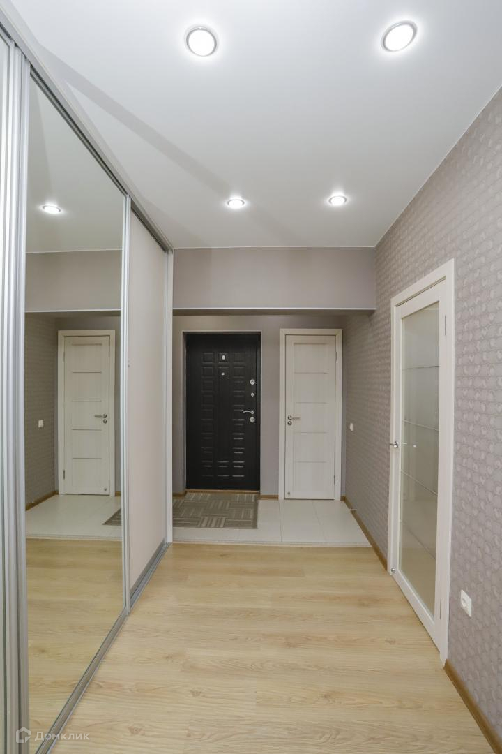 Просторный коридор со встроенным шкафом купе, который поместит в себя не только повседневные, но межсезонные вещи. Также имеется диванная обувница и дополнительные нищи.
