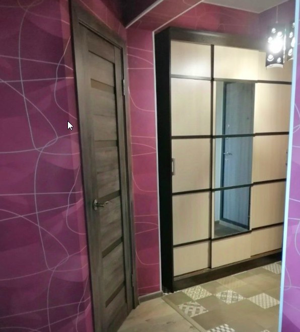 Кухня - 8.2, комната - 16.3, санузел - 4.9 м2. В просторной прихожей - шкаф-купе и гардеробная.