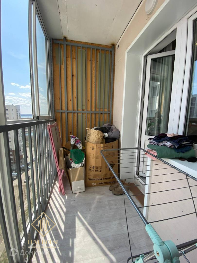 Балкон застеклен и очень просторный.