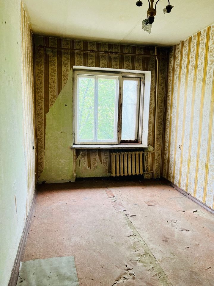 Раздельная планировка, высота потолков 3,5м как в сталинке, раздельный санузел. Требует ремонта, без балкона. Солнечная сторона.