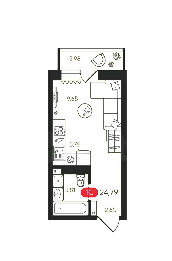 Общая площадь 26 м2