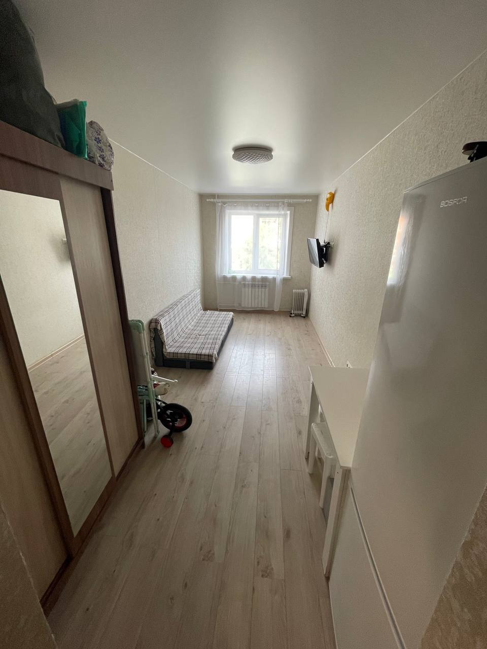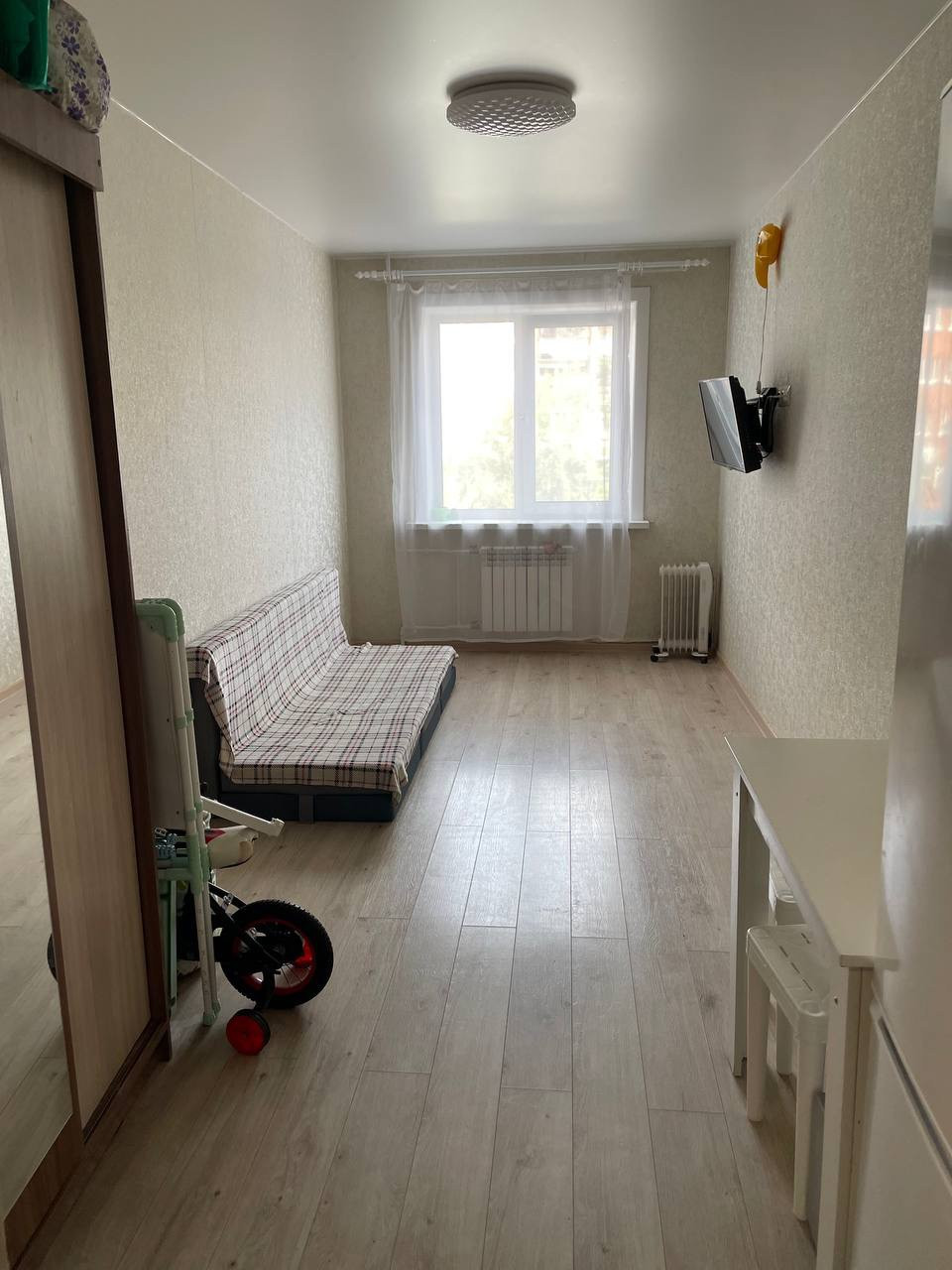 1-комнатная квартира с хорошим ремонтом в светлых тонах. Заменена электрика и сантехника, медные трубы, железная дверь, пластиковое окно, качественные моющиеся обои, натяжной потолок, на полу ламинат, новый радиатор, в санузле качественная плитка, хорошая душевая кабина. Во дворе две детских площадки, хорошие спокойные соседи, рядом два детских сада (143 и 33), школа 43, две остановки транспорта