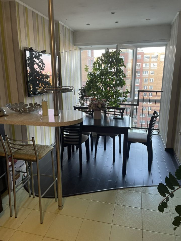 Кухня гостиная с панорамным остеклением и три раздельные комнаты, с/у раздельный ванна,светлая.