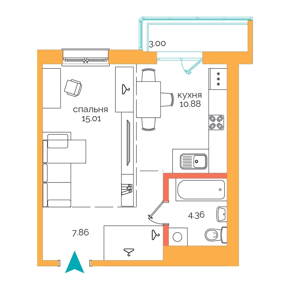 Общая площадь 41.11 м2