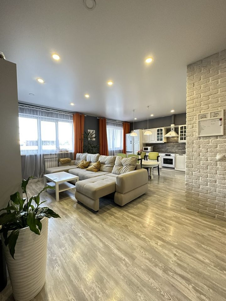 Квартира просторная, светлая и очень тёплая. Общая площадь - 76 м2. Окна выходят на 2 стороны дома.