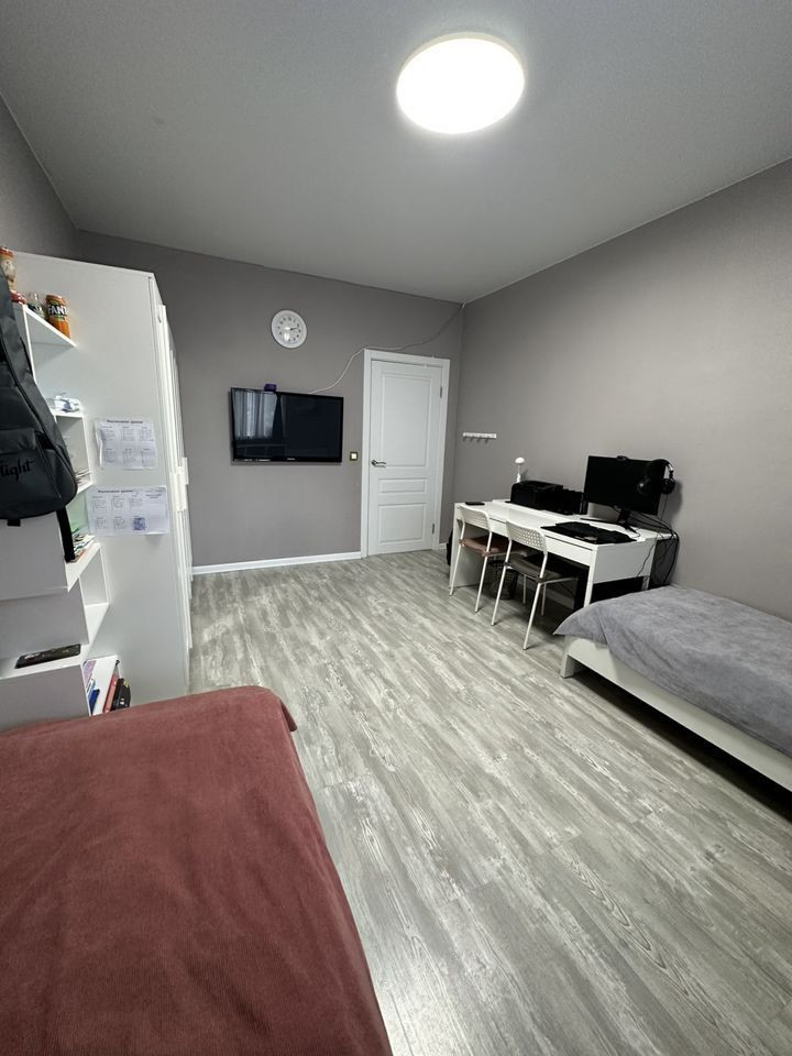 - Во дворе есть: детская площадка, наземный/подземный паркинг, современный ремонт, также имеются: интернет, кабельное телевидение, счетчики холодной и горячей воды, железная дверь, кухонный гарнитур.