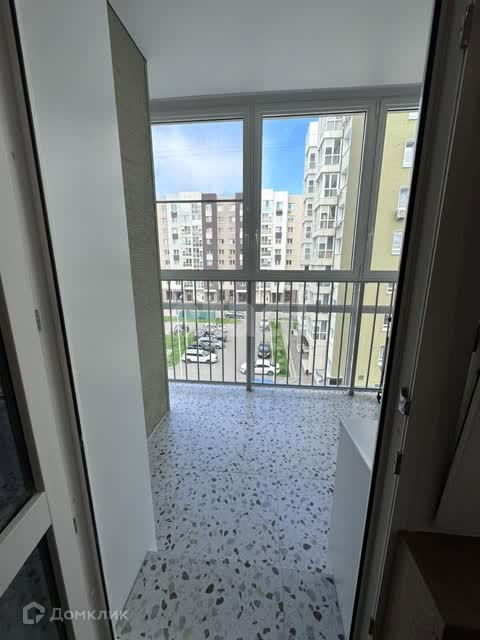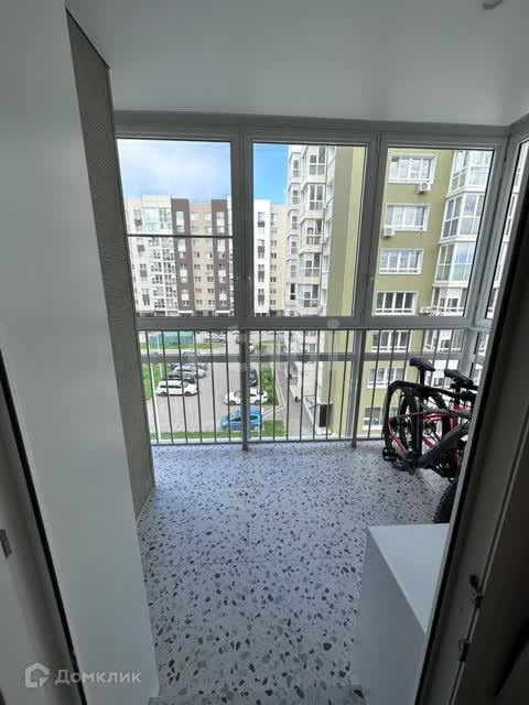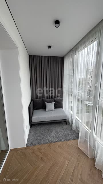 На большом балконе организована лаунж-зона с диванчиком.