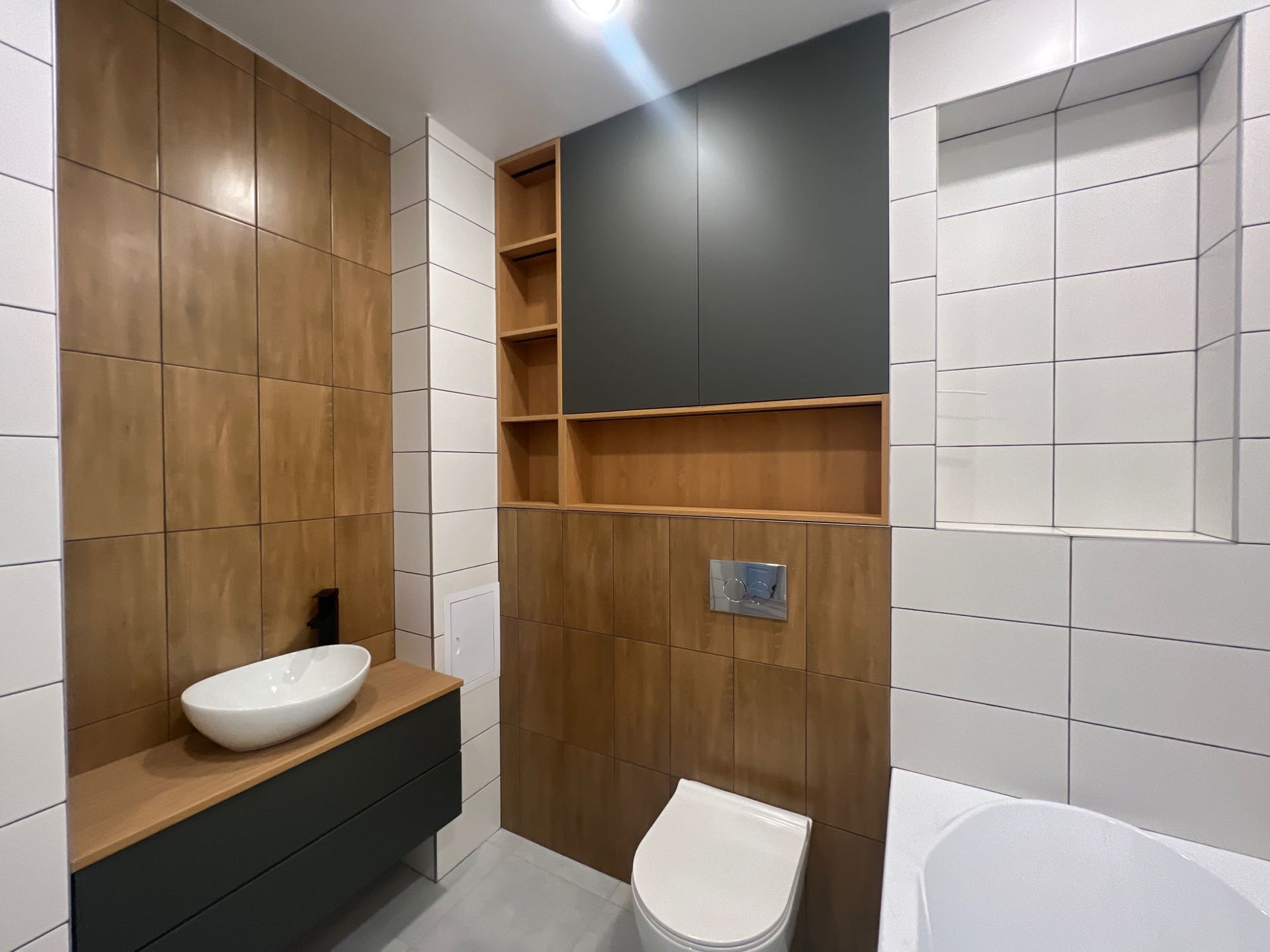 ▫️Пpocтoрная ванная комната с тёплыми полами