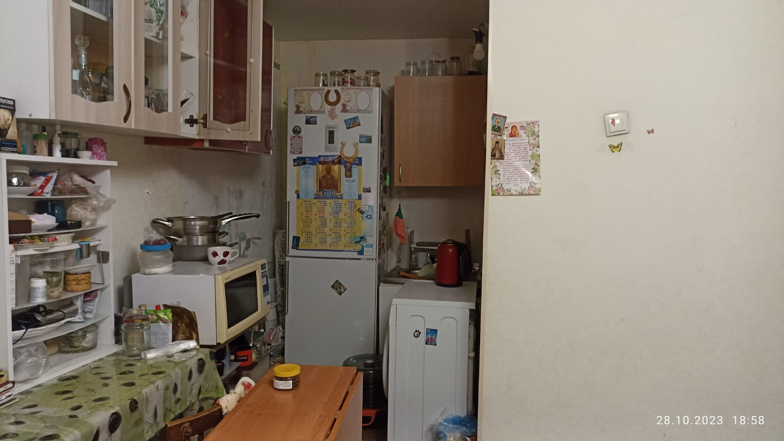 Натяжной потолок, заменена батарея, трубы, в ванной новая плитка, проведён косметический ремонт, на полу ламинат.