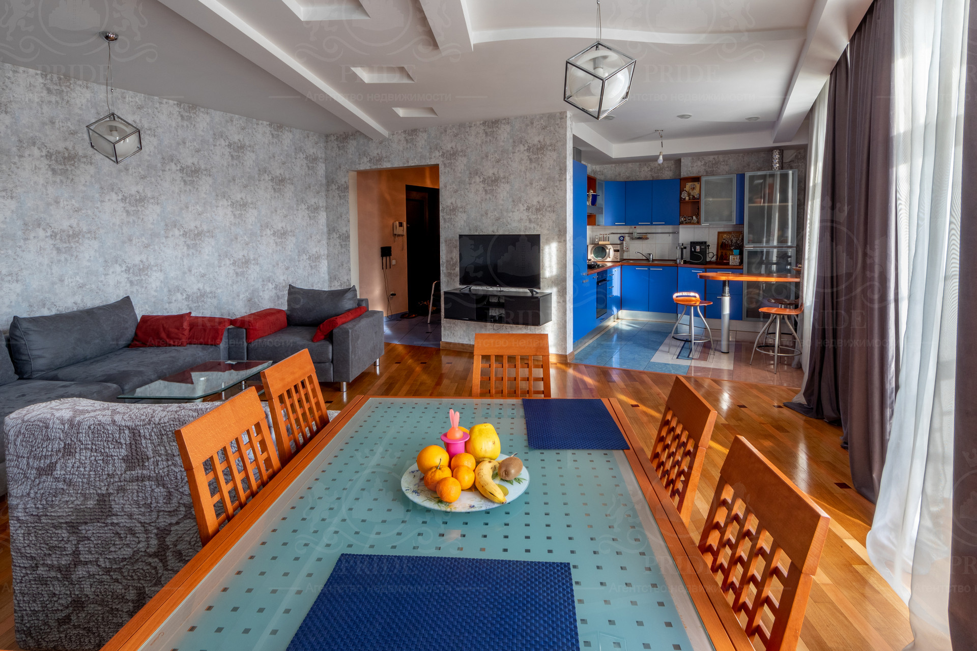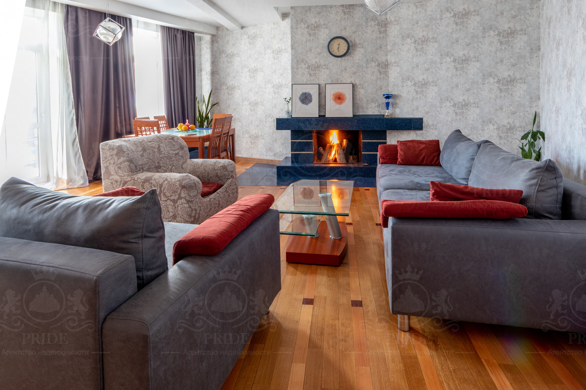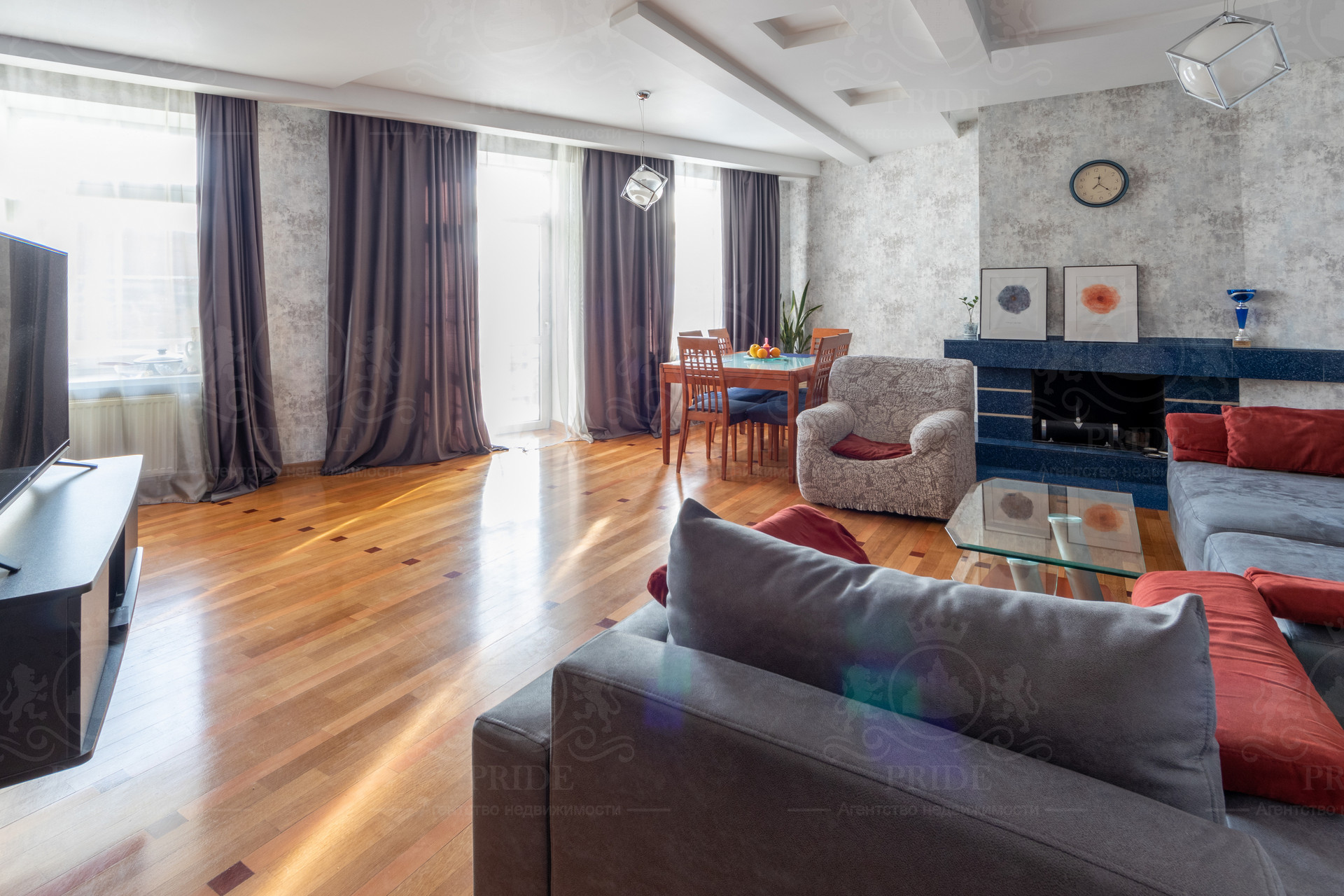 Просторная гостиная с балконом объединена с кухней а так-же с настоящим камином. Окна квартиры ориентированы на две стороны света. Жилой дом находится в тихом историческом месте нашего города Иркутска.