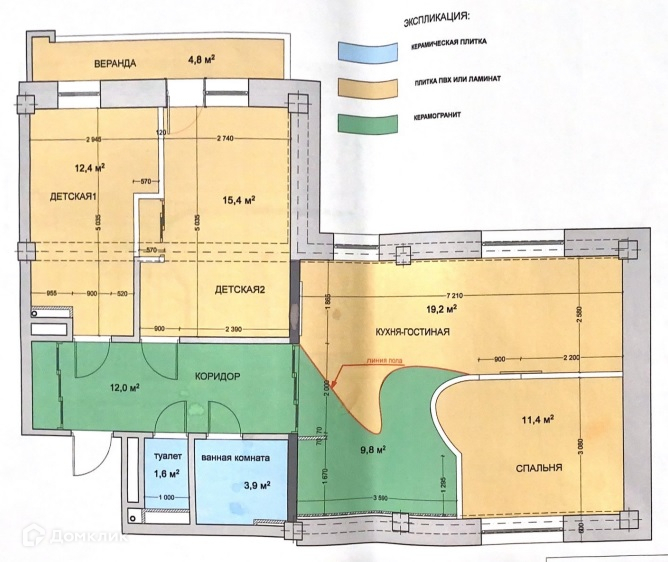 — 1-я детская комната – 15,4м2;