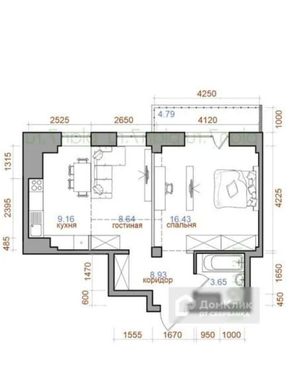 Общая площадь 51 м2
