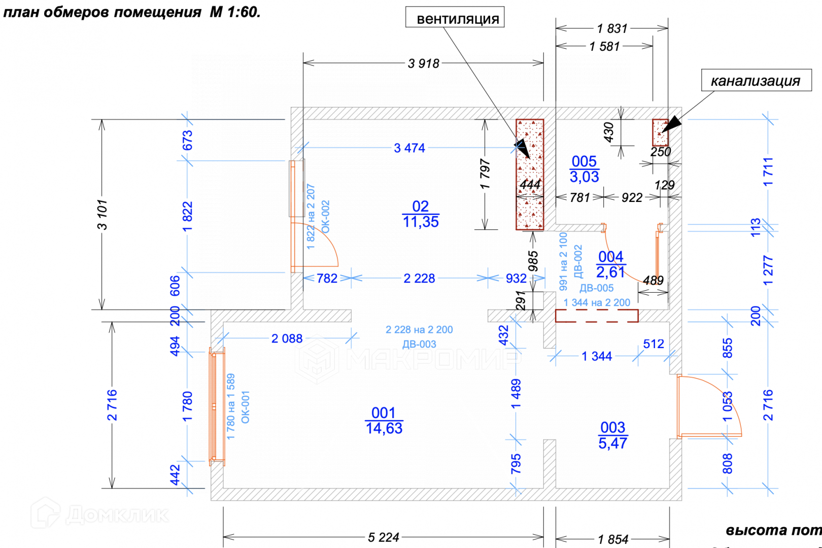 Высота потолков 2.8 м
