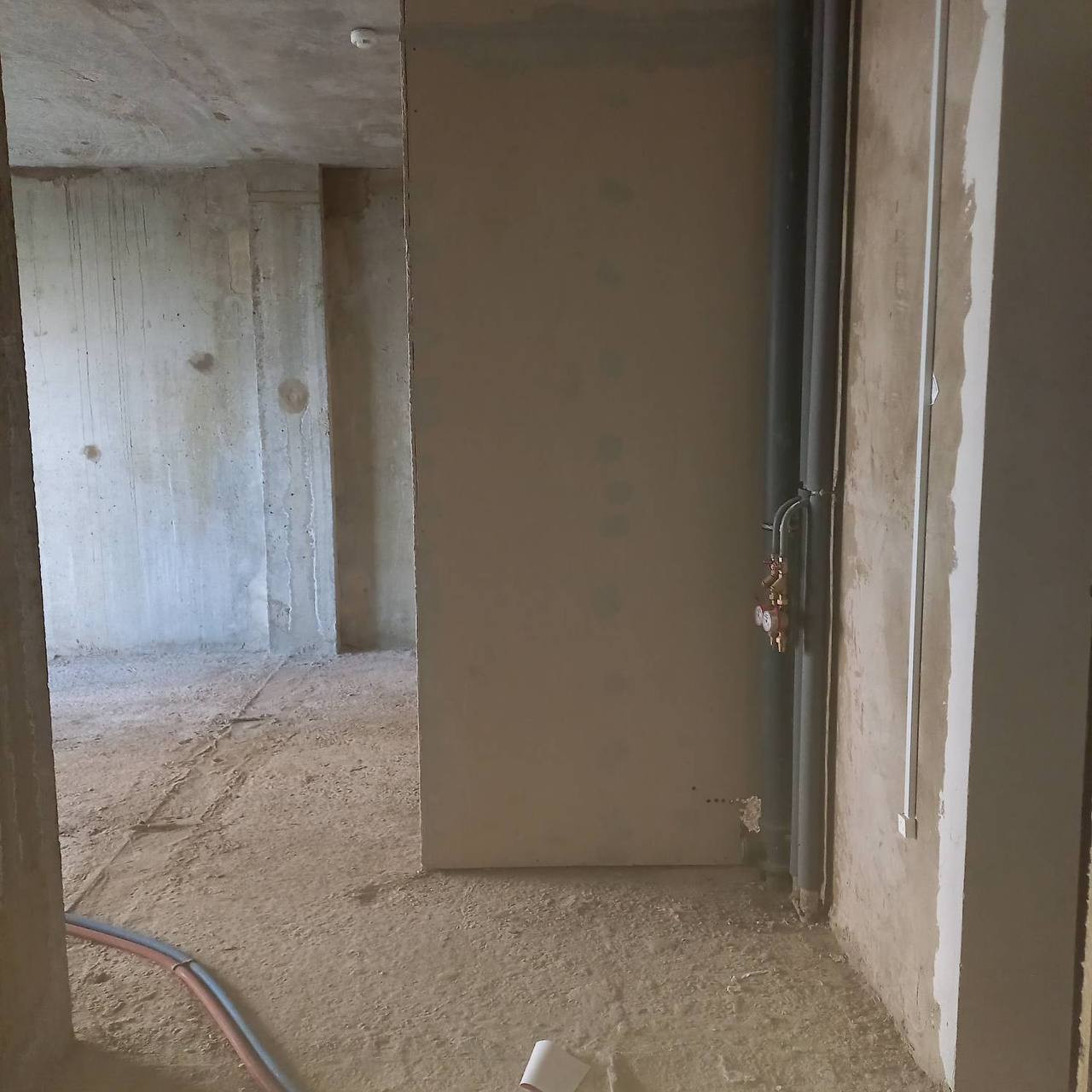 Стены ровные бетонные, перегородки межкомнатные.