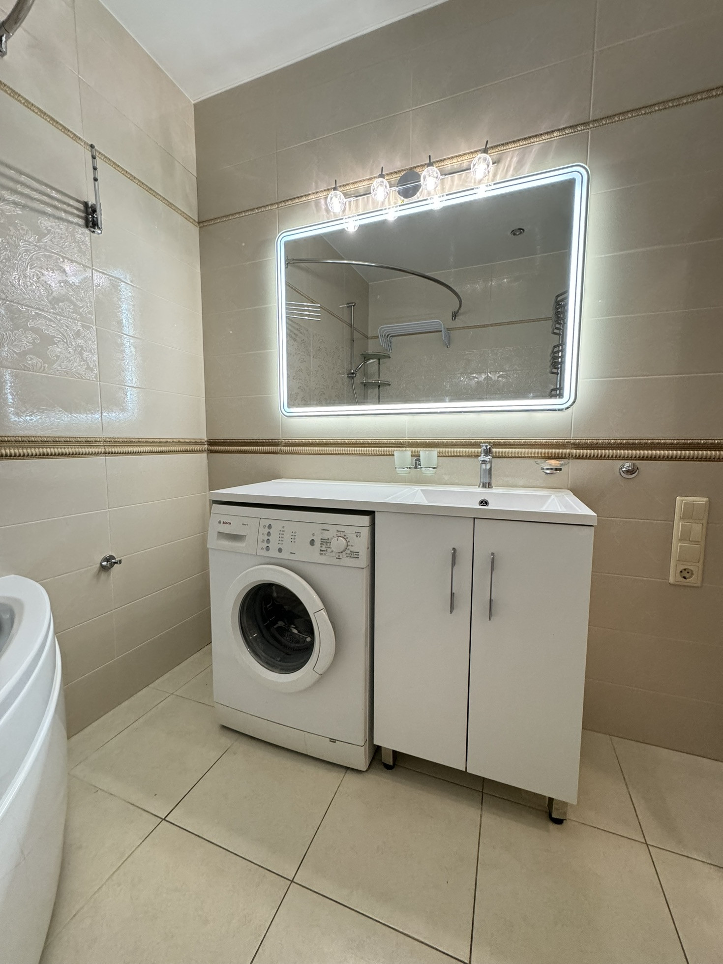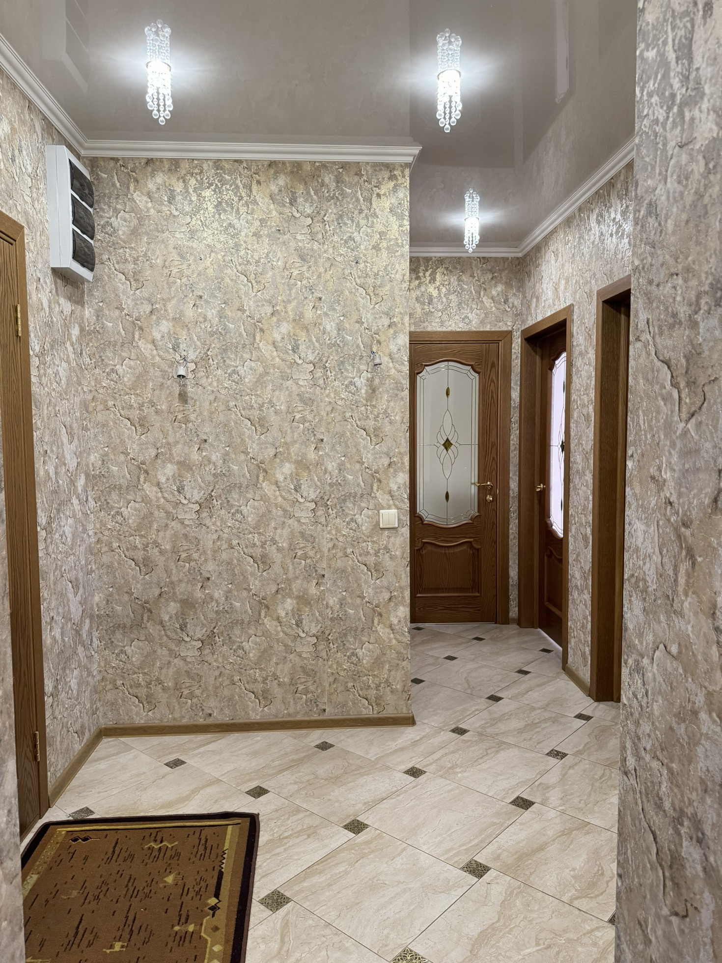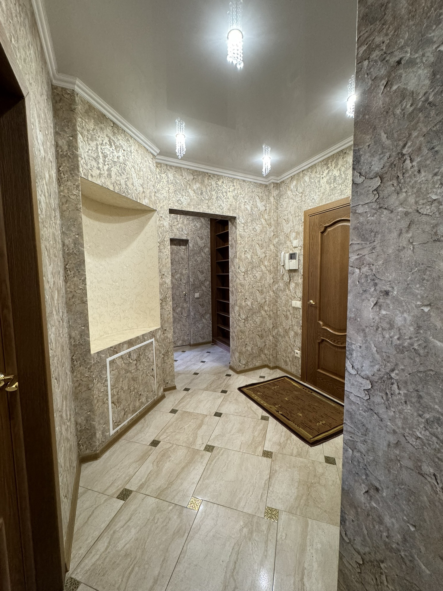 Выполнен качественный ремонт из дорогих материалов в классическом стиле, продумано всё до мелочей.