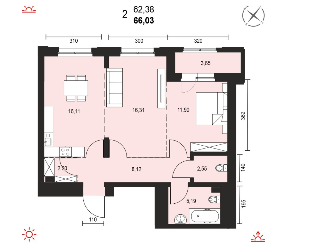 Общая площадь 66.3 м2