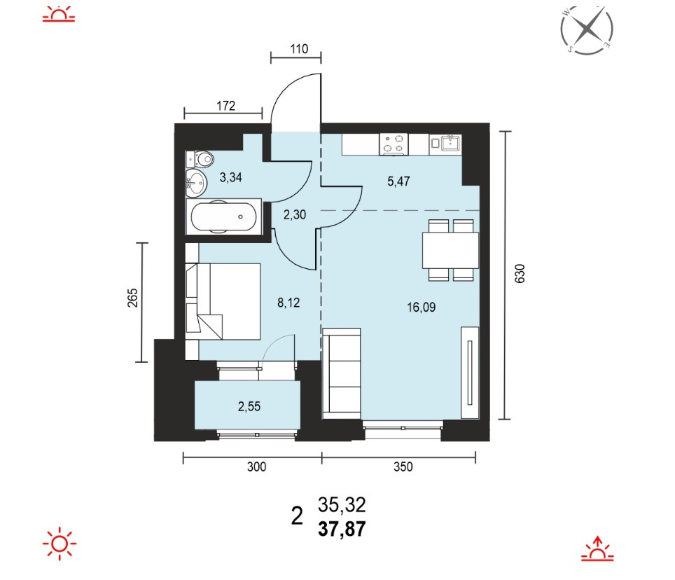 Общая площадь 38 м2