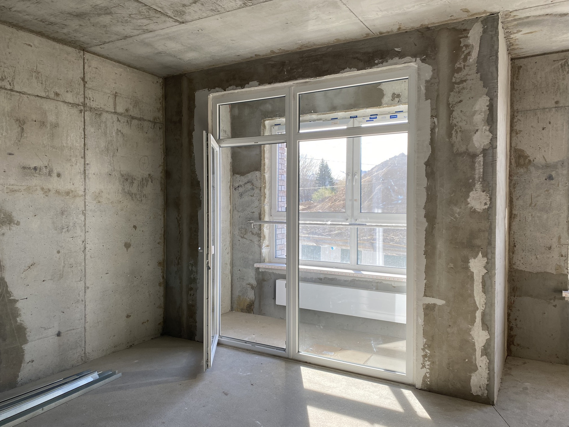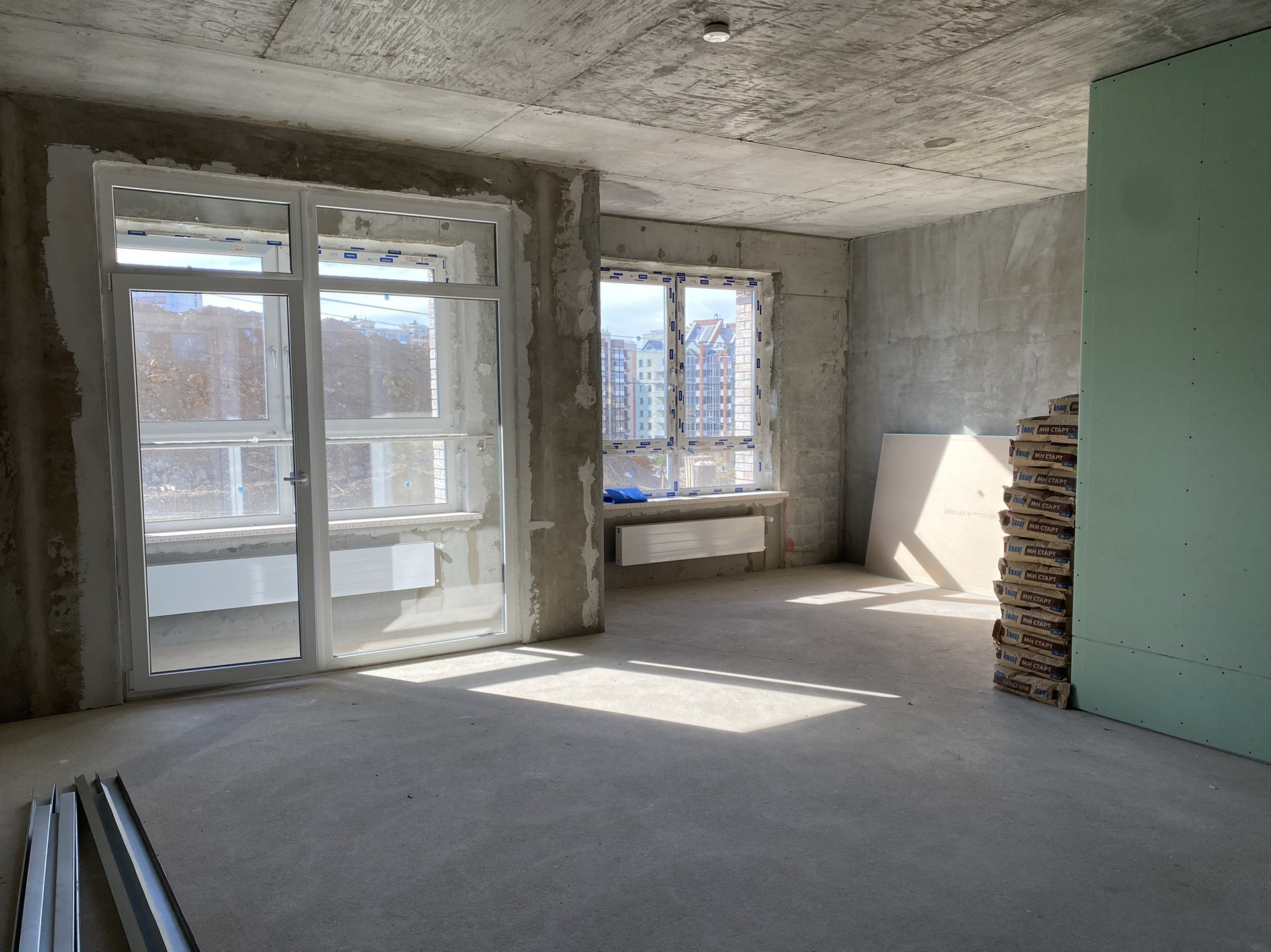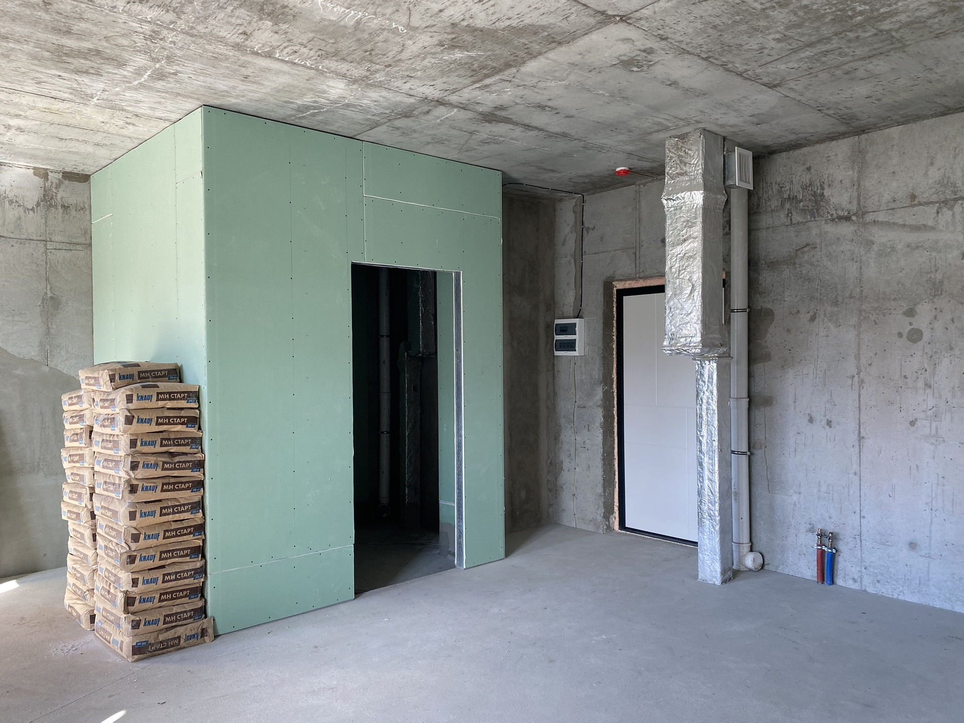 —Выполнена полусухая стяжка пола с армированием фиброволокном.