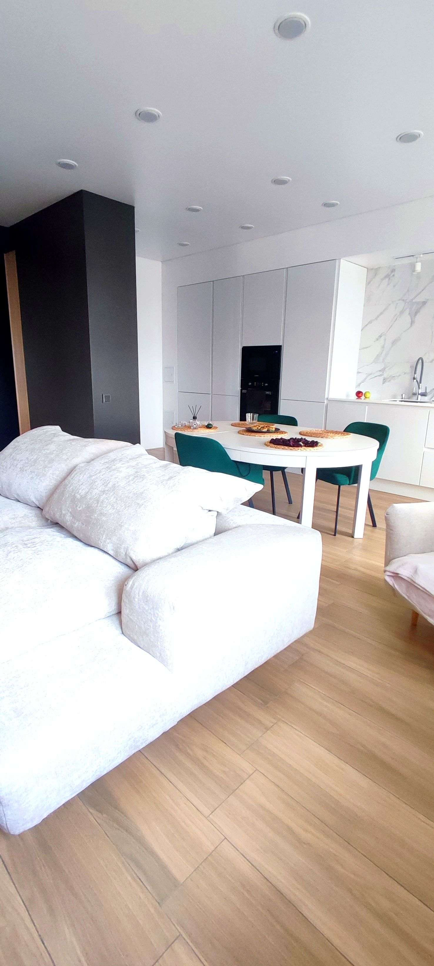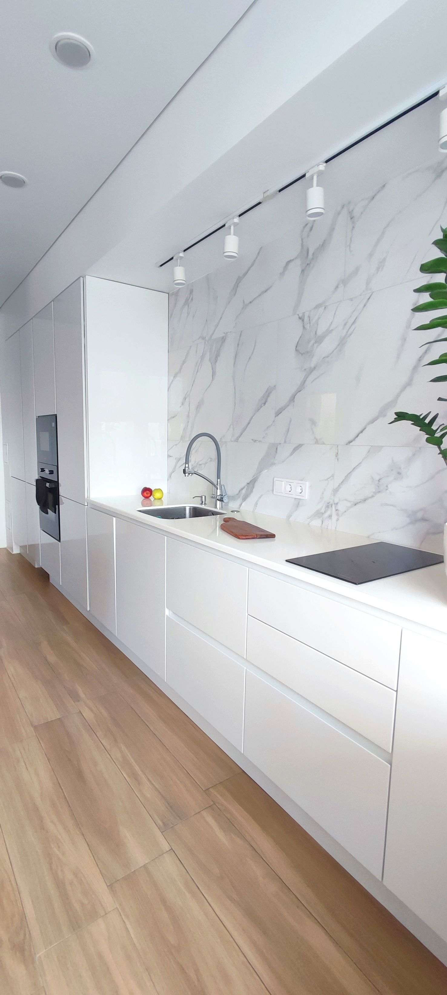 Площадь квартиры - 58 м2 включает в себя:  Просторную кухню-гостиную ~30 м2, где вы можете принимать гостей или отдыхать после рабочего дня. Из техники - встроенный холодильник, варочная панель, измельчитель пищевых отходов, духовой шкаф, микроволновая печь, посудомоечная машина на 45см.