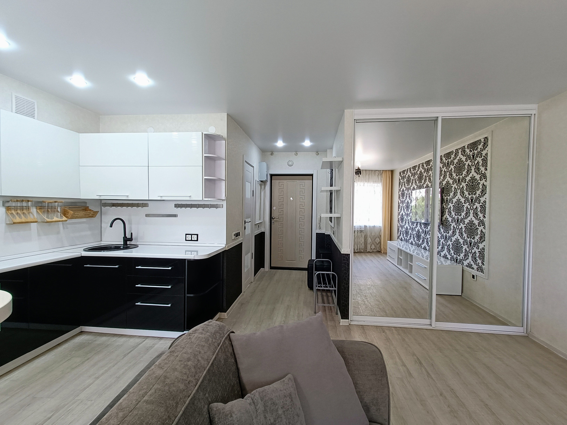 ️ Видовая квартира, комфортный 6 этаж. Площадь квартиры 29,9+ балкон 4,1 кв.м. Квартира очень просторная, уютная,много солнечного света. Сделан качественный, дизайнерский ремонт: новая входная  дверь,потолки натяжные, стены идеально выровнены, покрытие пола плитка/ламинат, красивые межкомнатные двери, современные обои, в санузле керамогранит, наличие тёплых полов.Квартира в очень ухоженном, аккуратном состоянии, всё соответствует фотографиям. Очень тёплая и сухая. Квартира полностью укомплектована качественной мебелью и техникой и готова к проживанию. Не требует дополнительных вложений.