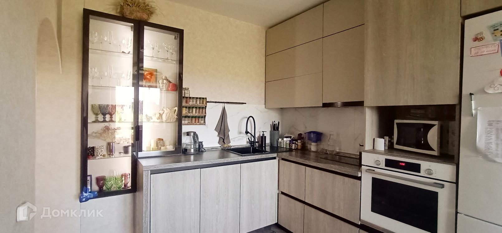 В подарок остается мечта каждой хозяйки это современный и стильный кухонный гарнитур, сделанный на заказ, где продуманна каждая мелочь, а также встроенный шкаф-купе в коридоре, в котором для всего найдется место.