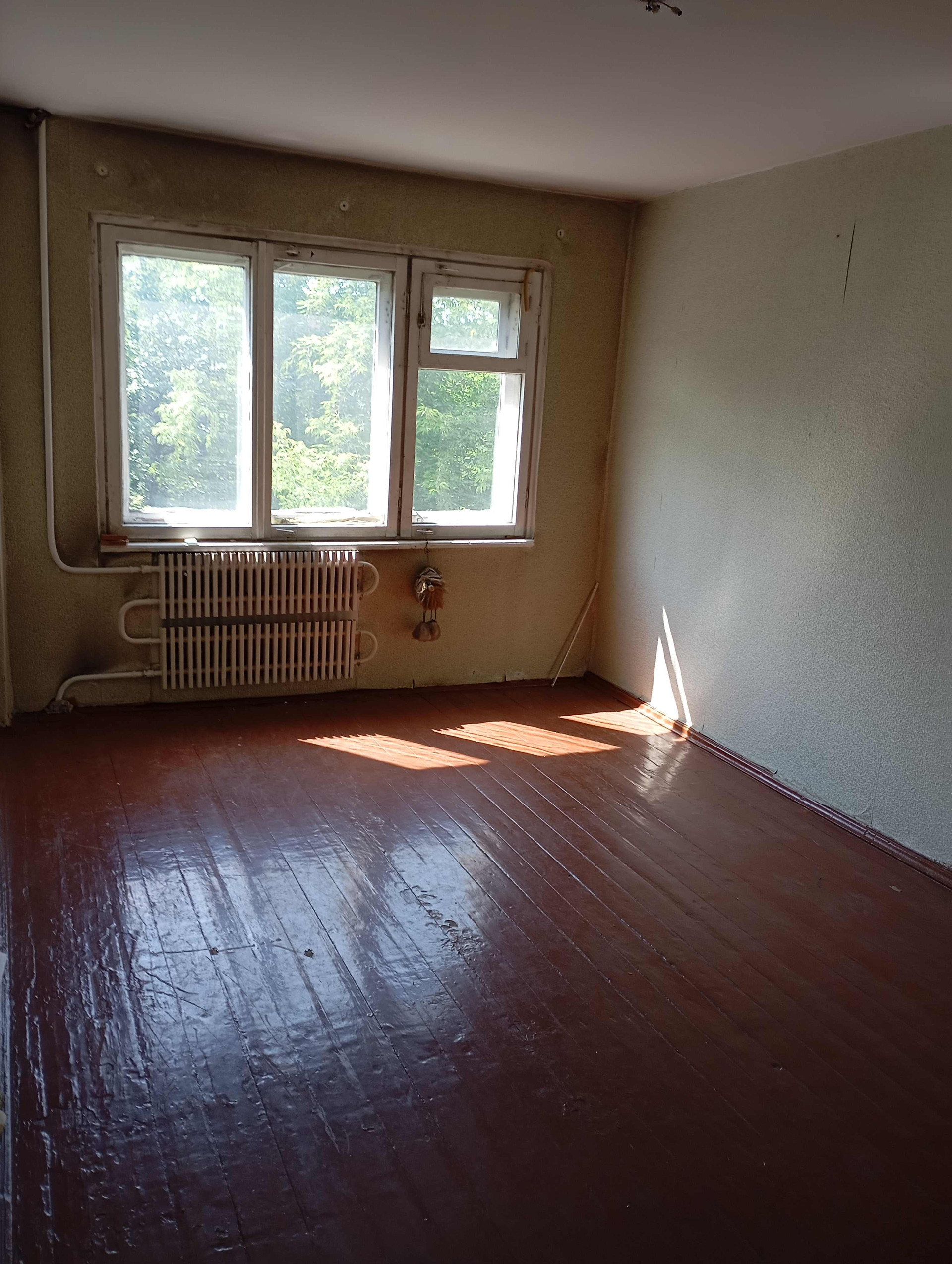 3 комнатная квартира с деревянным полом, большой прихожей. нужен ремонт в соответствии с вашим вкусом. Чистый подъезд, ухоженный,,утопающий в зелени двор.