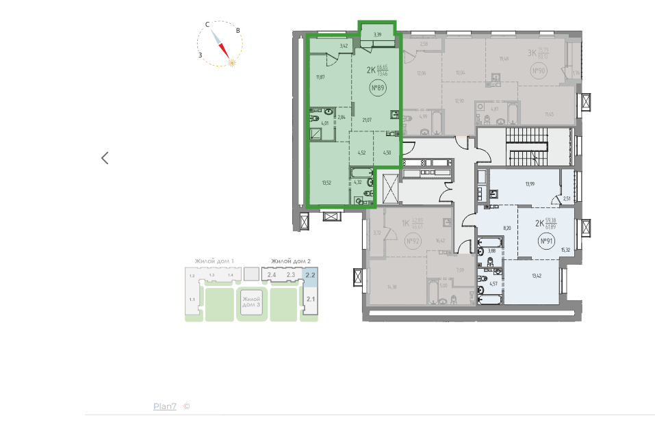 Количество комнат 2