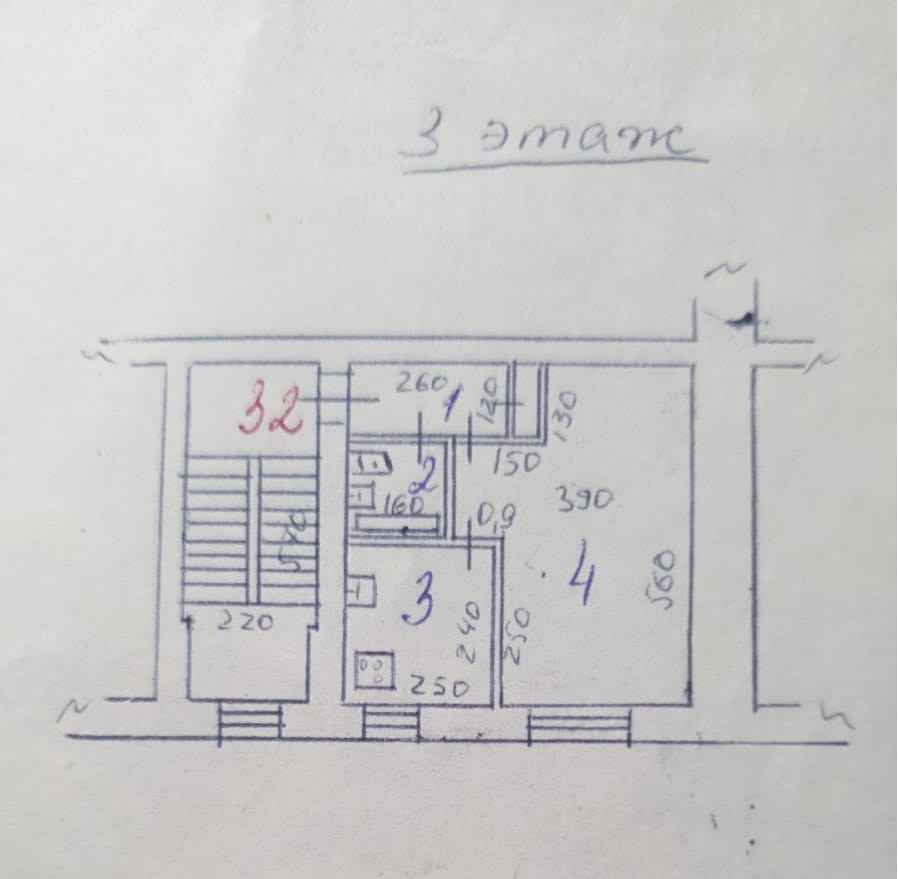 В продаже однокомнатная квартира в кирпичном доме на третьем этаже, без балкона.