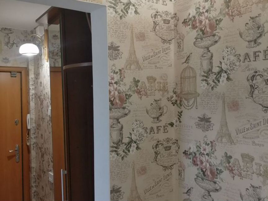 На стенах обои в светлых тонах.