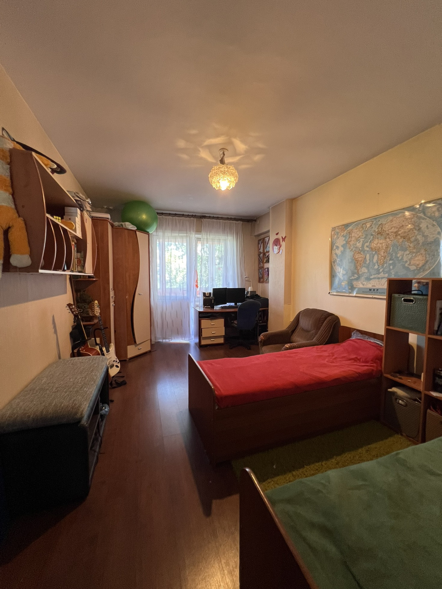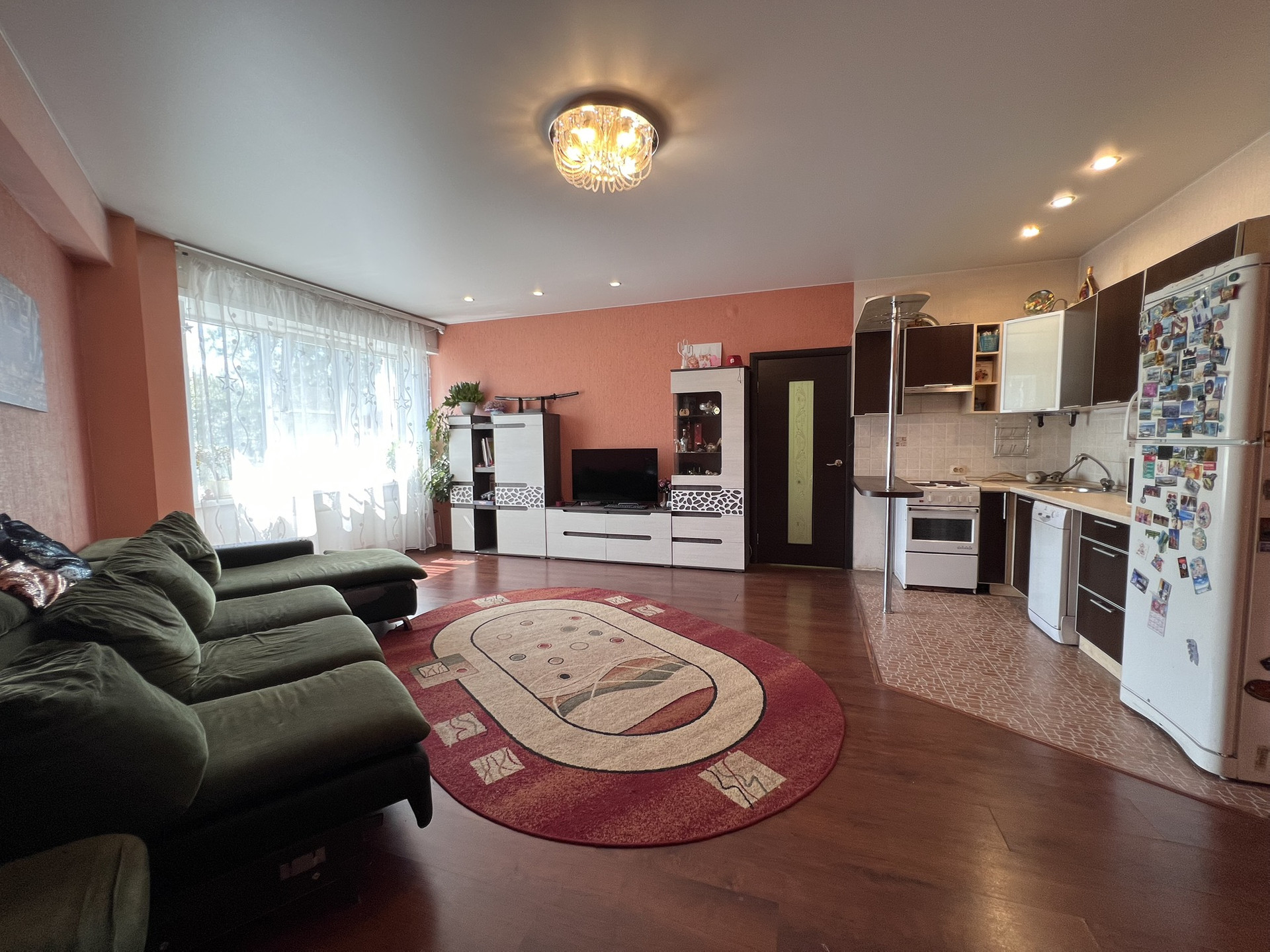 Три раздельные комнаты и большая кухня-гостиная.