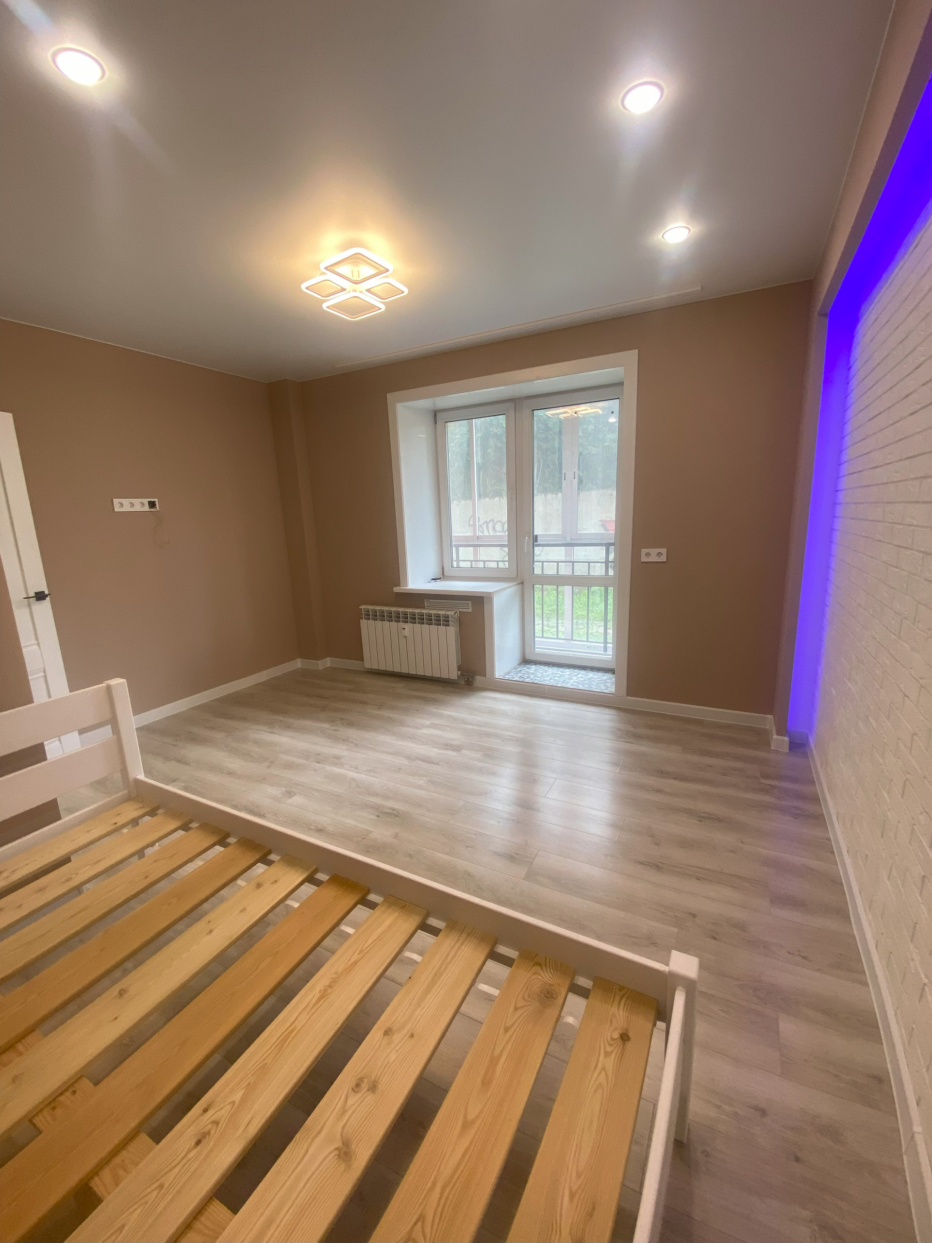 В квартире сделан качественный, дорогостоящий ремонт. Всё делали для себя: стены идеально ровные, тёплый пол в санузле и прихожей, декоративное настенное освещение в спальне. Лоджия застеклена от застройщика, пол - плитка.