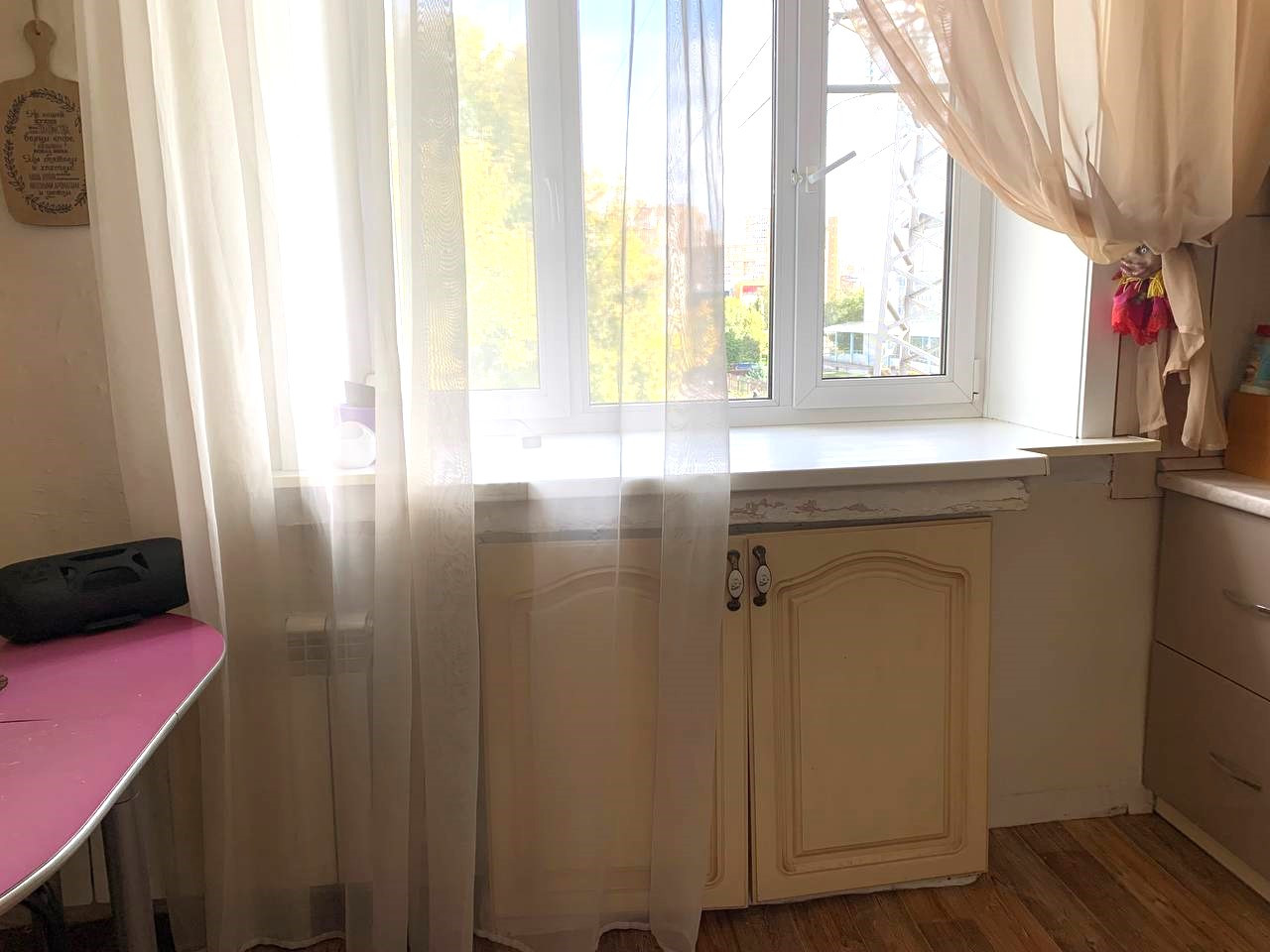 -Удобная планировка , раздельные комнаты 19,5 и 13,1 кв.м., просторная кухня 9 кв.м. , раздельный сaн. узeл, гаpдeробная. Высокие 3-х метровые потолки , толстые стены.