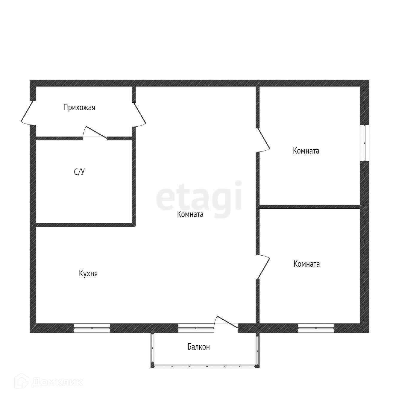 Общая площадь - 56,6 м2.