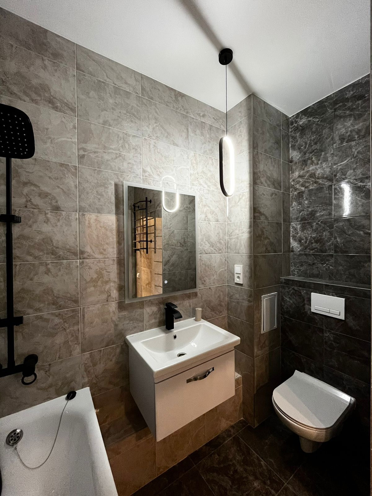 ✔️В ванной комнате благородный керамогранит, теплый пол