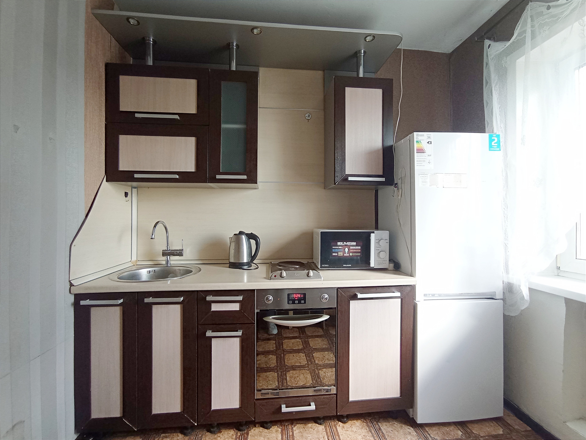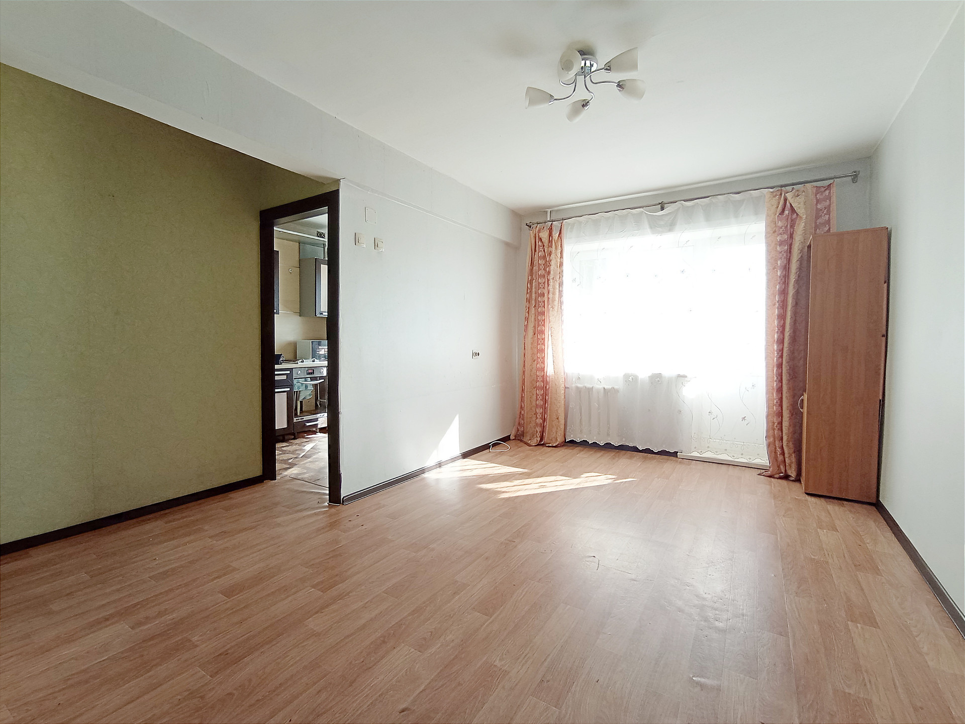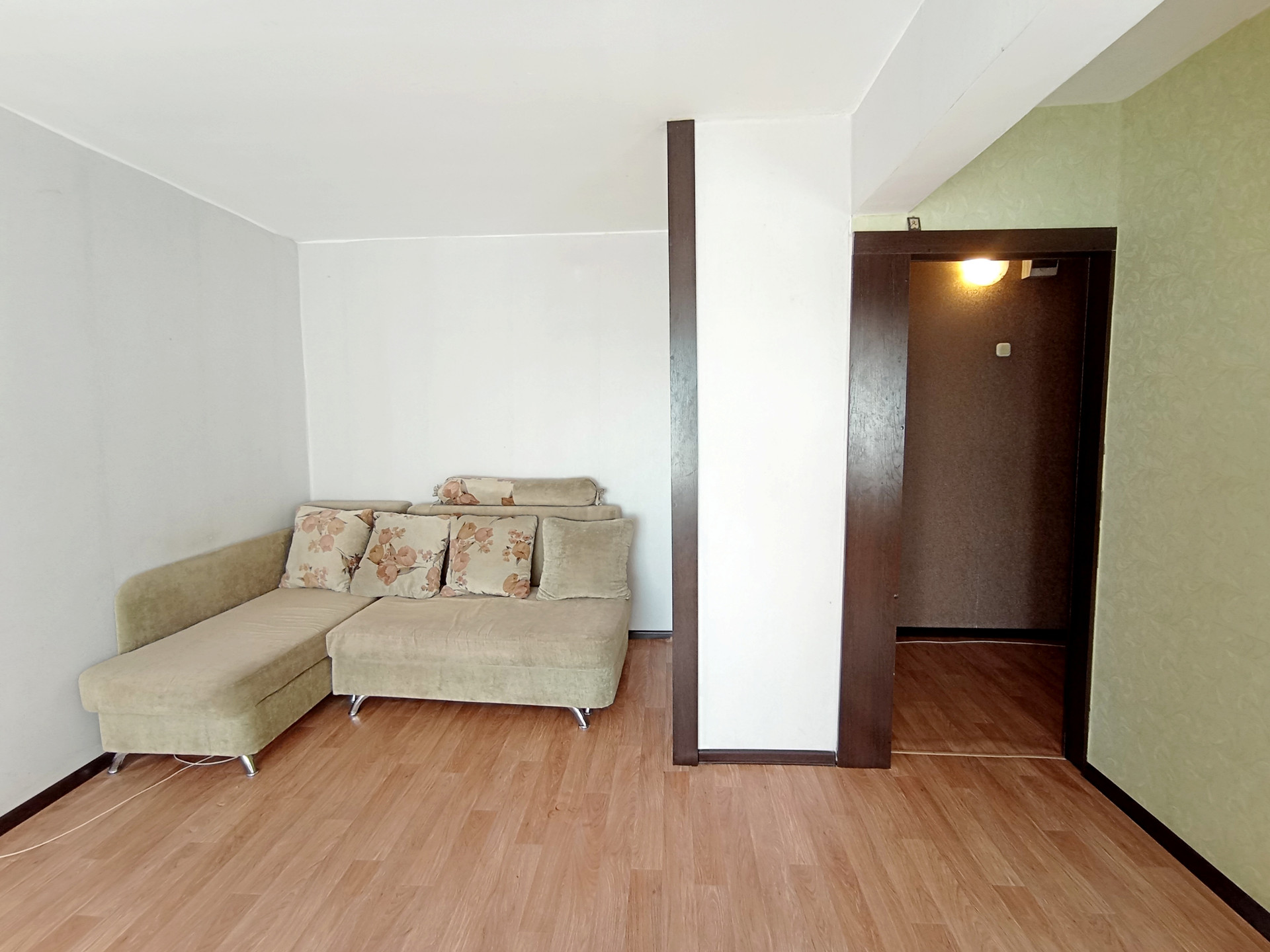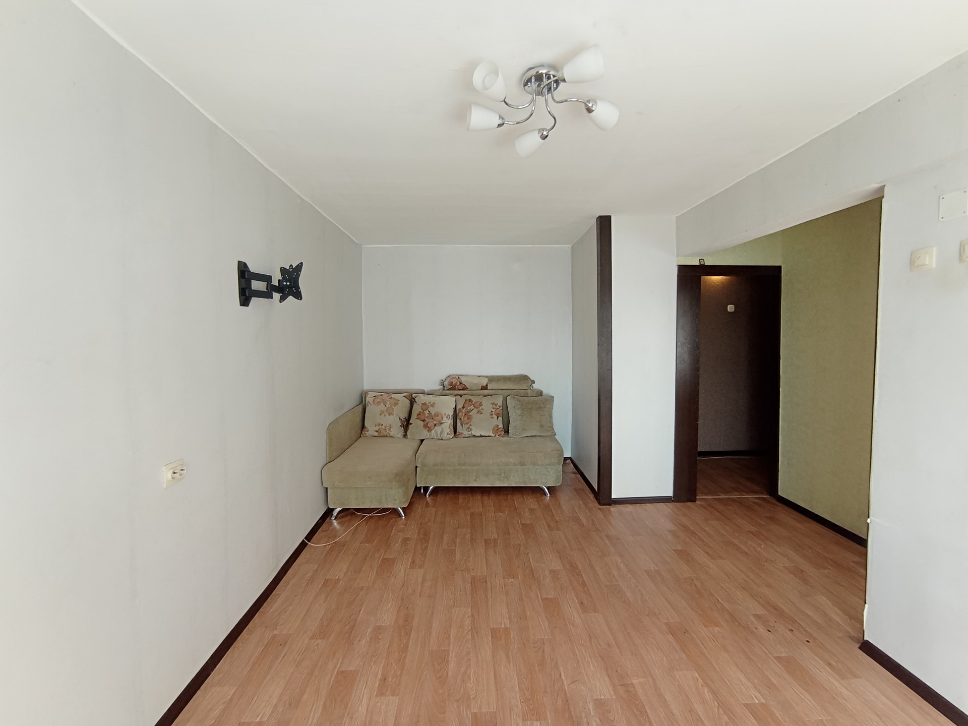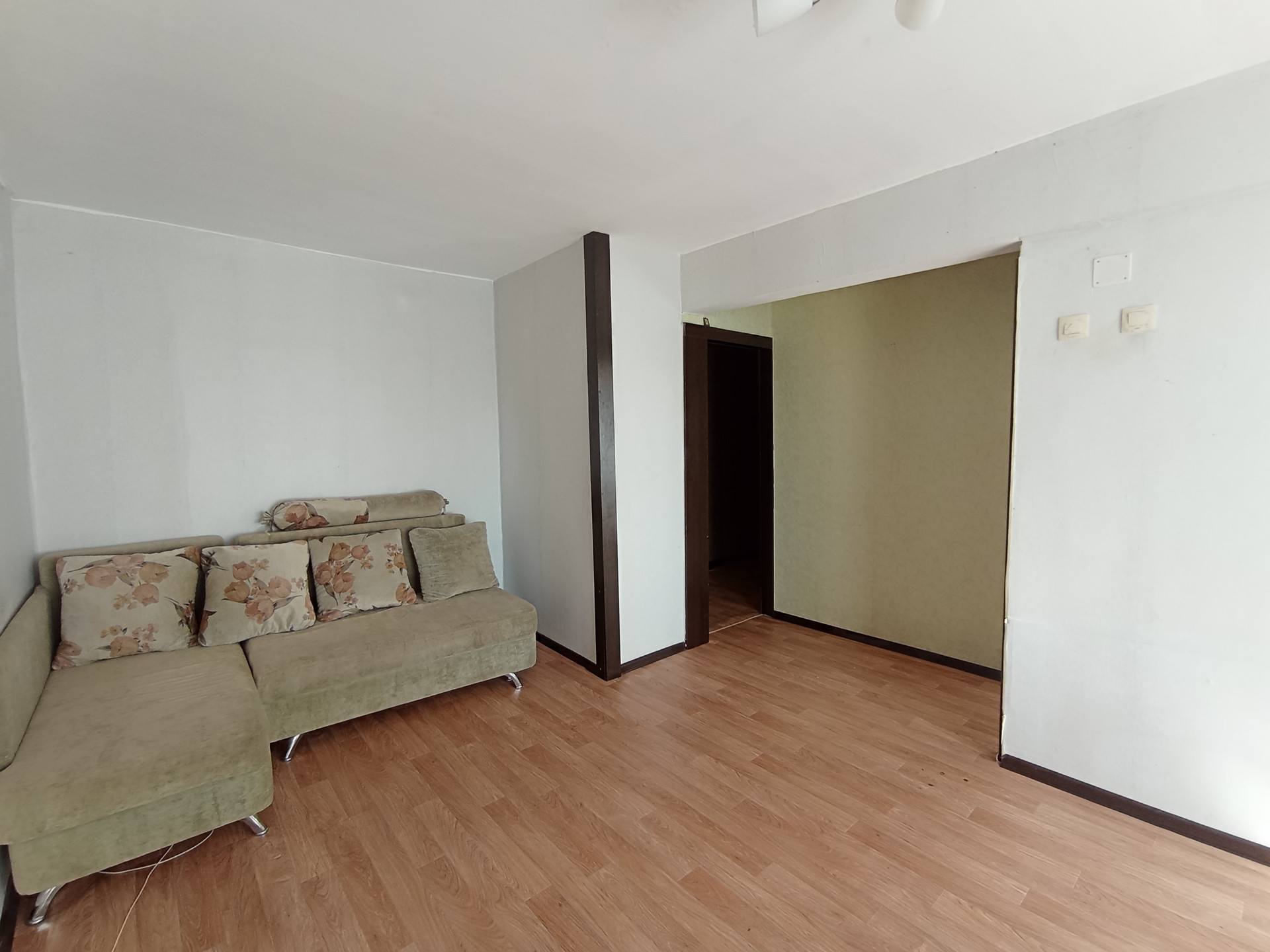 Квартира с обычным ремонтом. Пол - линолеум. Потолок натяжной.