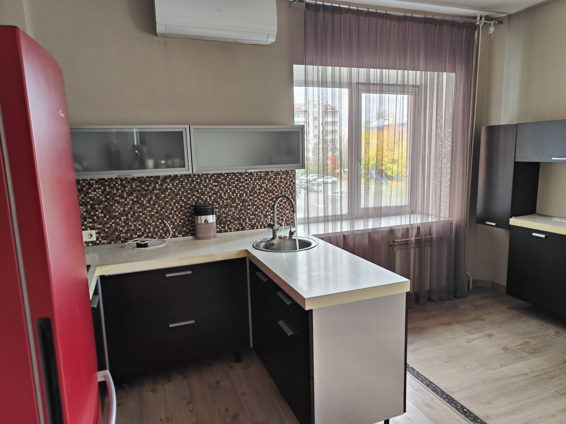 Просторная квартира с большой кухней-гостиной. Высокие потолки, хорошие встроенные шкафы. Уютный подъезд на пять квартир.