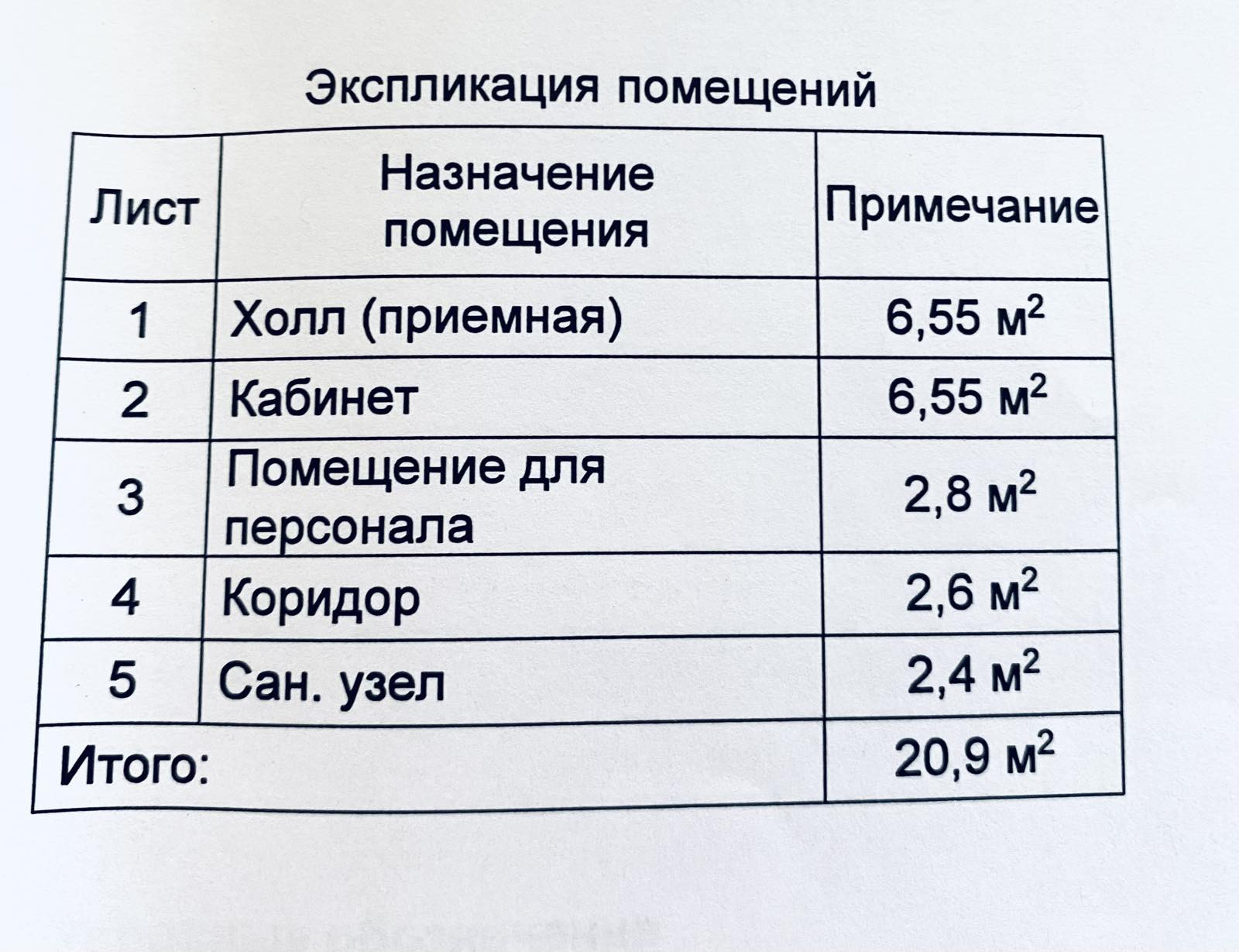 Общая площадь 20.9 м2