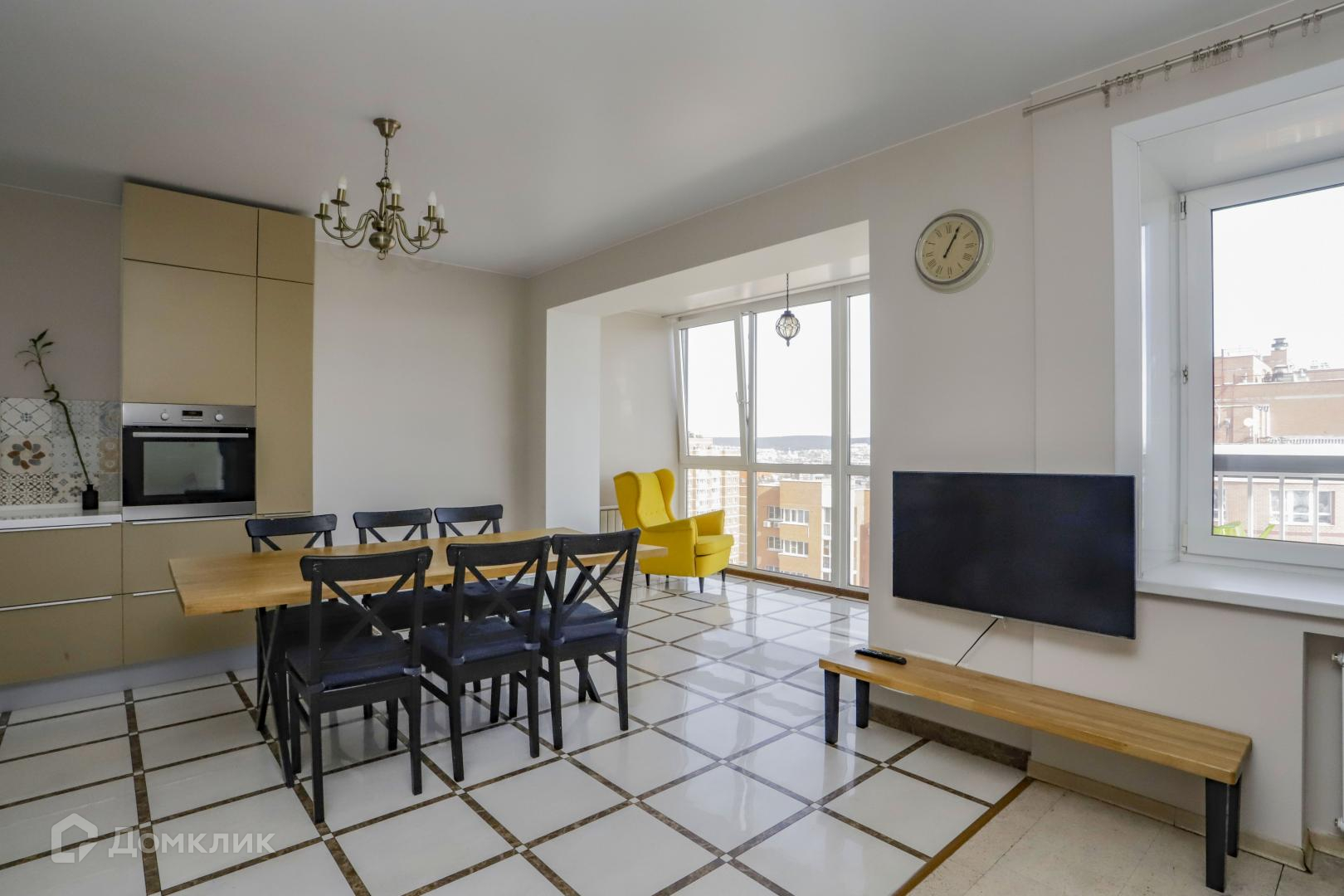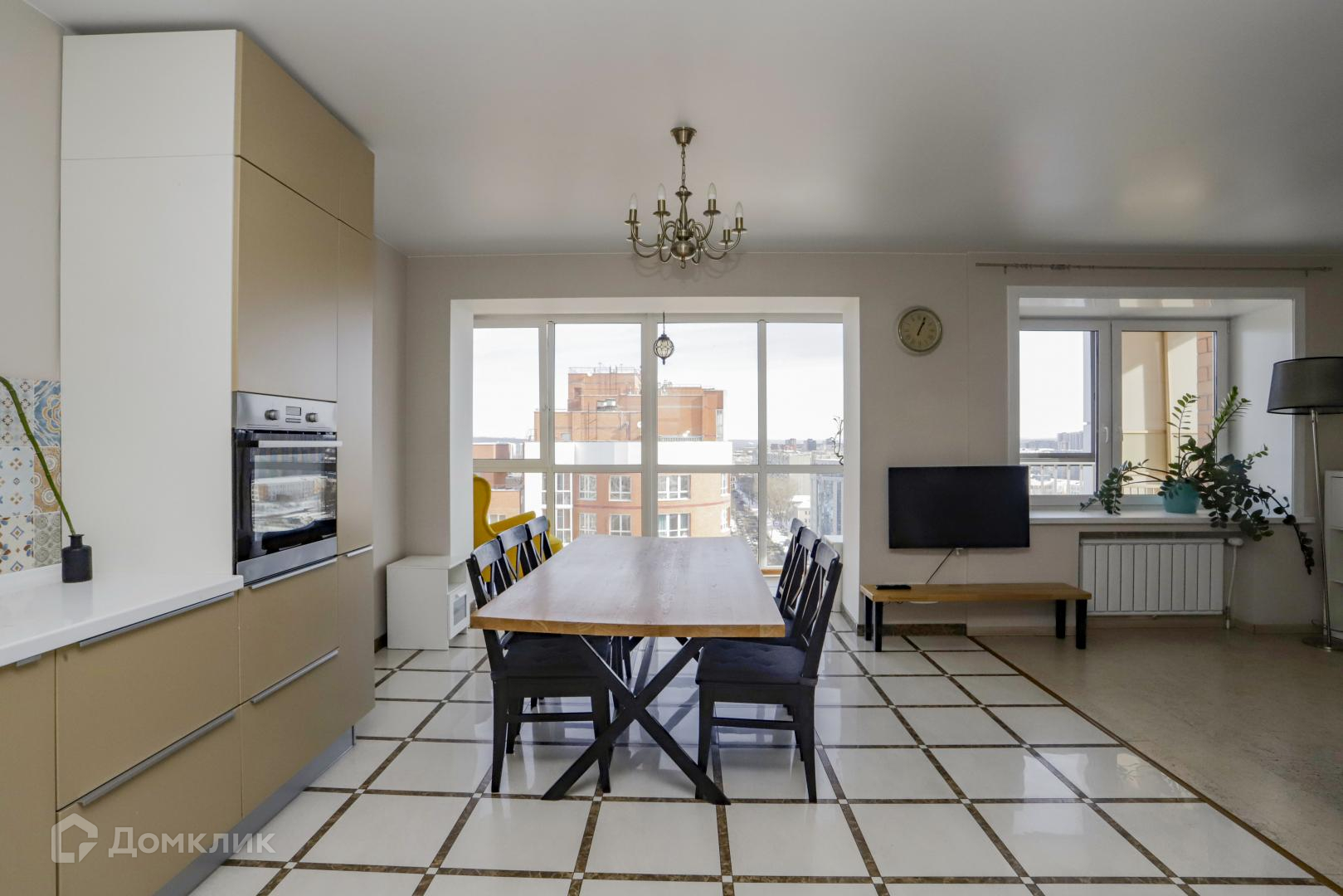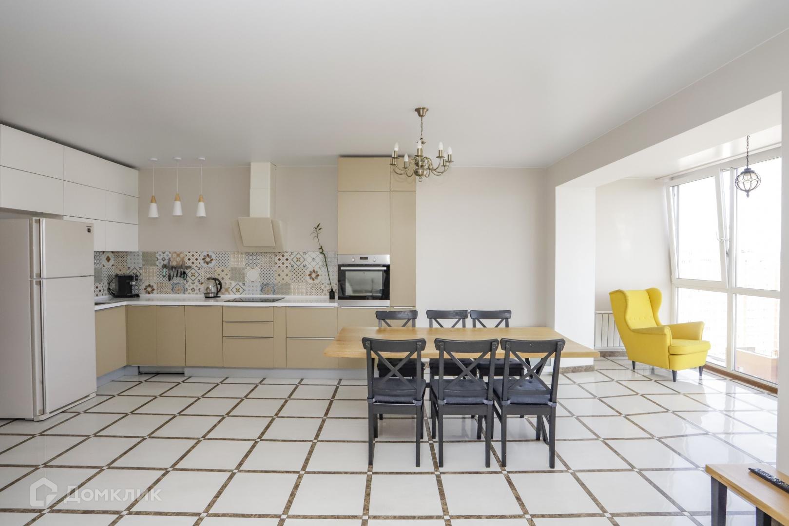 Квартира общей площадью 110 кв.м., просторная кухня объединенная с залом, с панорамными окнами, 2 спальни + гардеробная