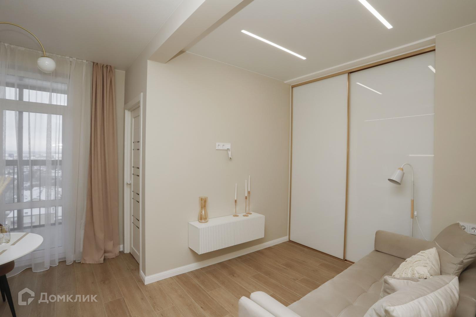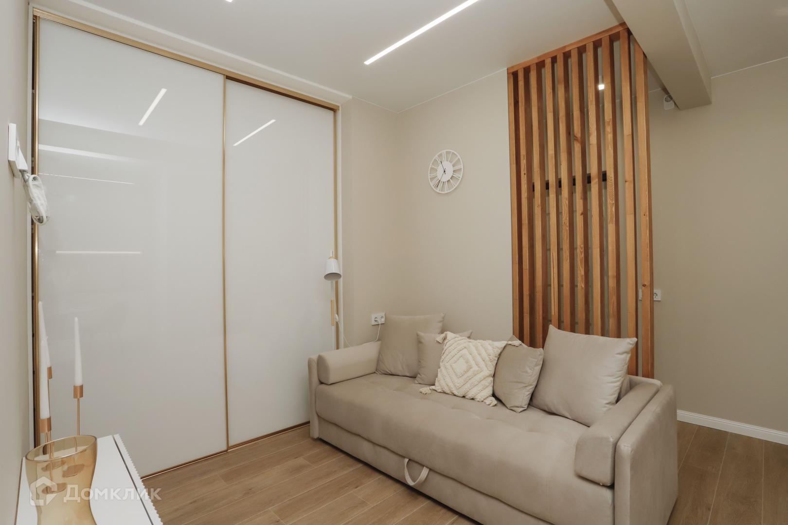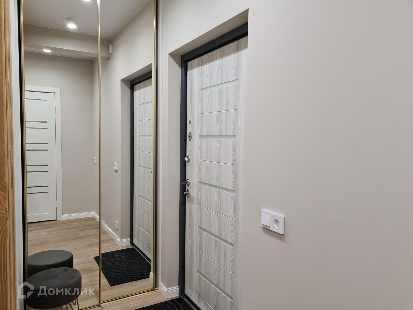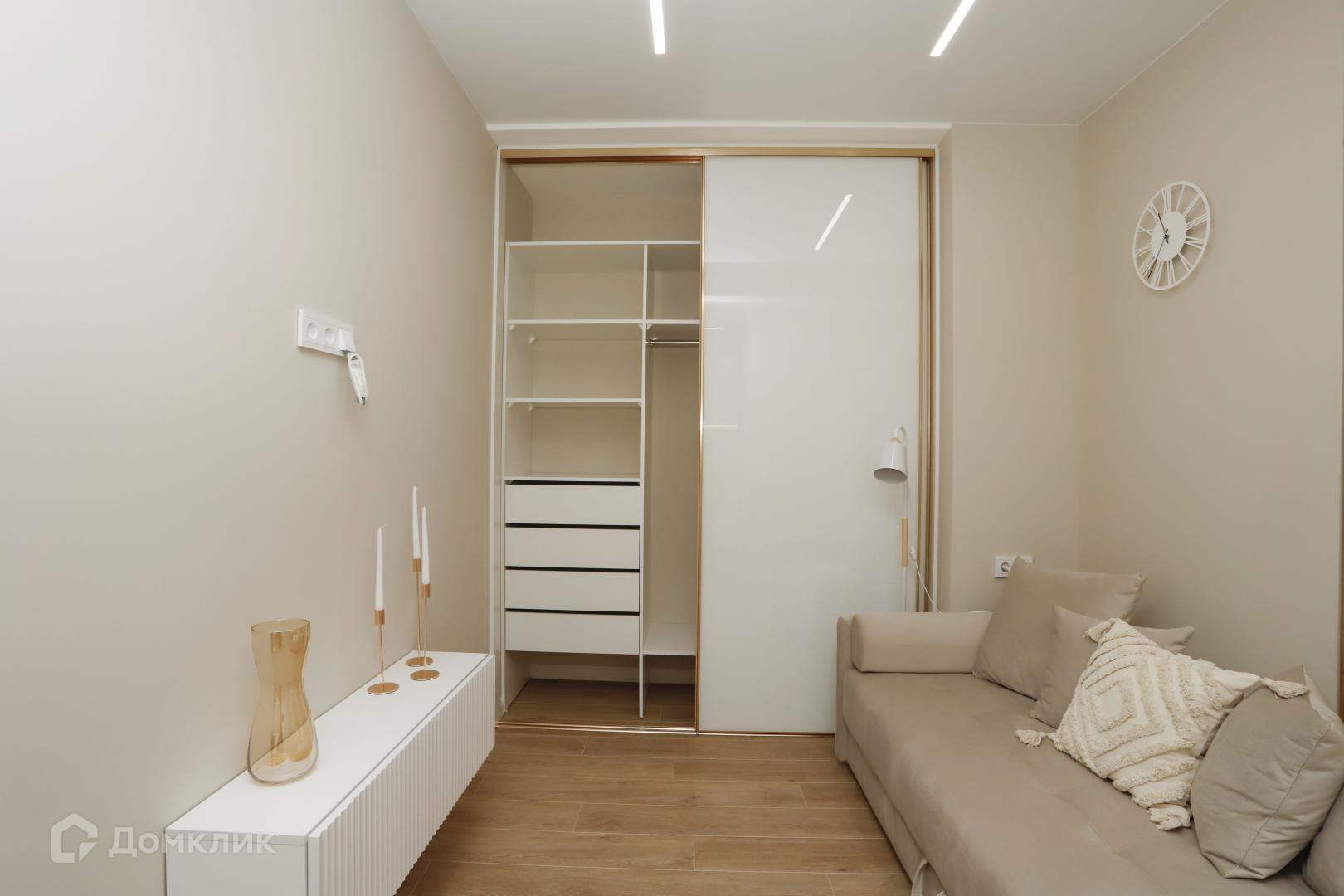В пpихожей вместительная гардеробная, в гостиной удобный шкаф-купе.