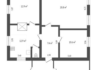 Общая площадь: 56.8 м2