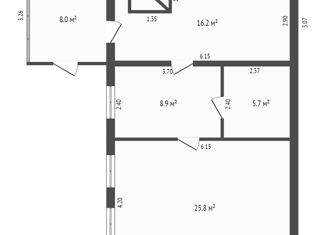 Продам дом 1990г.п., требует ремонта. Общая площадь 58,2 кв.м. Фундамент шлакобетонный, дом из бревна, окна-деревянные рамы. Высота потолков 2.37м. Одна из комнат 25,8 кв.м., вторая 8,9 кв.м., третья 5,7 кв.м., кухня 16,2 кв.м. Отопление печное. Газовый стояк у дома, воды нет, но есть возможность подключения к центральному водопроводу, электричеств... |