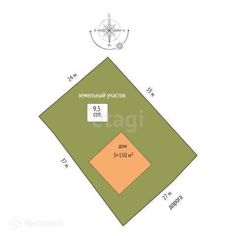 Площадь участка 9.5 сот.